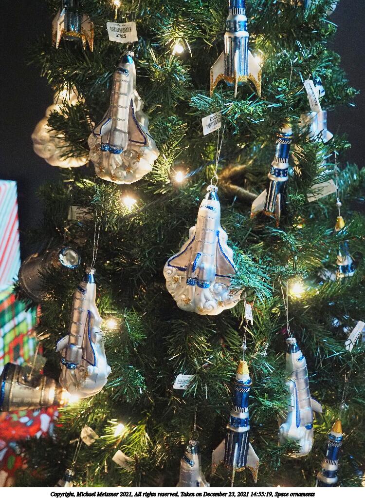 Picture #128: Space ornaments #2 Thumb: 500x375, 79,798 bytes (78K) Small: 1000x772, 211,011 bytes (207K), (html file) Copyright, Michael Meissner 2021, All rights reserved Olympus E-M5-III camera with Olympus-m43 12-40mm f/2.8 lens f/3.2, ISO 2500, 1/60 sec, 24.0mm, auto mode, vivid color, matrix metering, bias -0.3, IS Auto, noise reduction auto 35mm equivalent focal length 48.0mm Programs used: crop, raw therapee Taken by Michael Meissner on December 23, 2021 14:56:08 Last modified on January 21, 2022 at 00:57 |