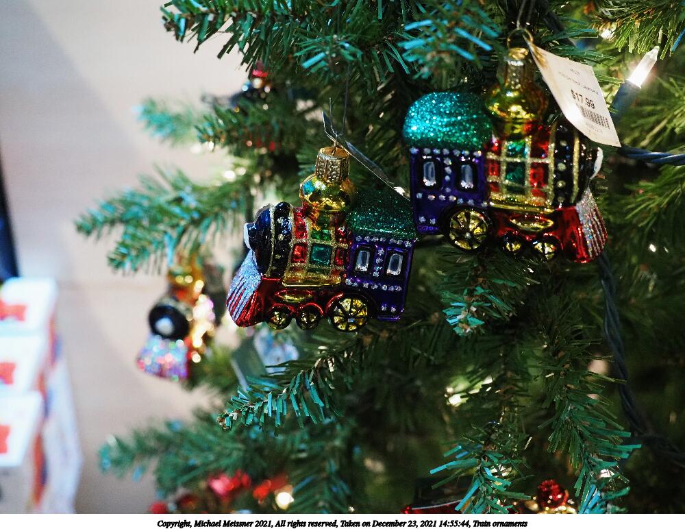 Picture #127: Train ornaments Thumb: 500x375, 68,587 bytes (67K) Small: 1000x772, 168,195 bytes (165K), (html file) Copyright, Michael Meissner 2021, All rights reserved Olympus E-M5-III camera with Olympus-m43 12-40mm f/2.8 lens f/2.8, ISO 4000, 1/60 sec, 24.0mm, auto mode, vivid color, matrix metering, bias -0.3, IS Auto, noise reduction auto 35mm equivalent focal length 48.0mm Programs used: crop, raw therapee Taken by Michael Meissner on December 23, 2021 14:55:44 Last modified on January 21, 2022 at 00:57 |