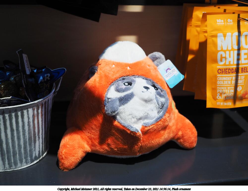 Picture #129: Plush ornament Thumb: 500x375, 50,872 bytes (50K) Small: 1000x772, 109,526 bytes (107K), (html file) Copyright, Michael Meissner 2021, All rights reserved Olympus E-M5-III camera with Olympus-m43 12-40mm f/2.8 lens f/2.8, ISO 320, 1/60 sec, 24.0mm, auto mode, vivid color, matrix metering, bias -0.3, IS Auto, noise reduction auto 35mm equivalent focal length 48.0mm Programs used: crop, raw therapee Taken by Michael Meissner on December 23, 2021 14:56:14 Last modified on January 21, 2022 at 00:58 |
