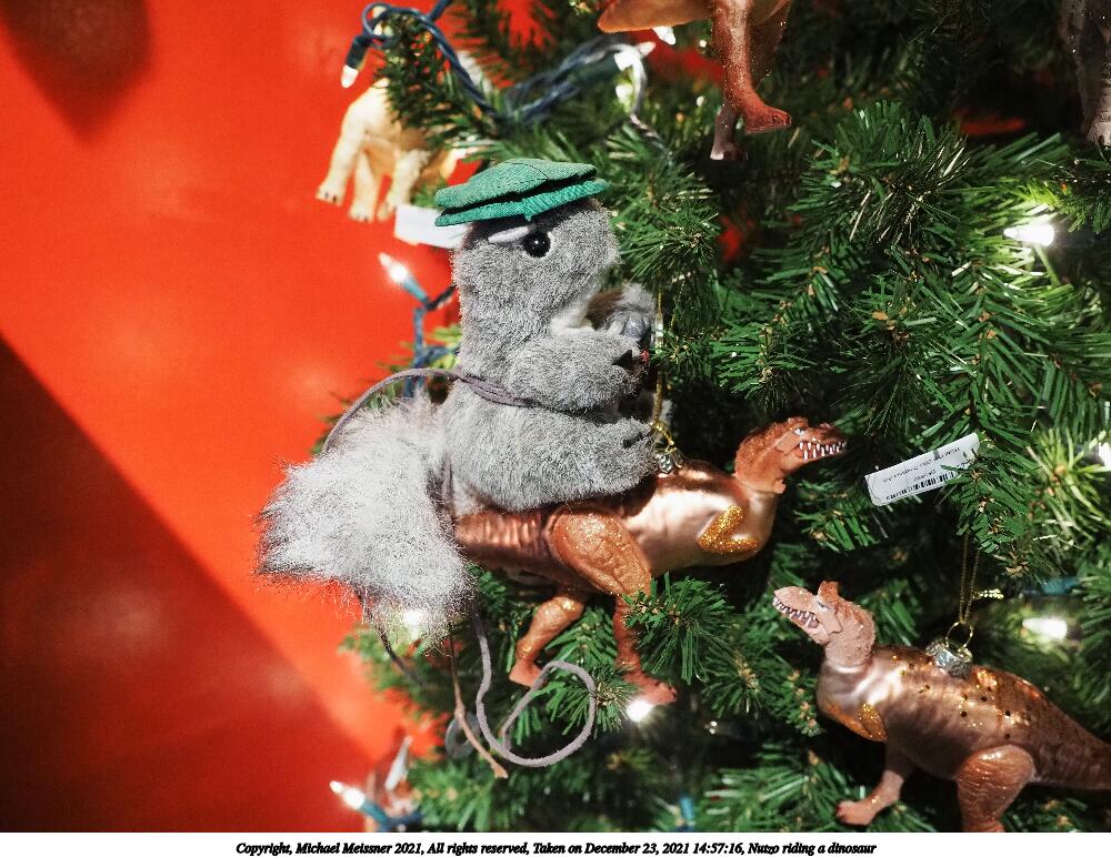 Picture #1: Nutzo riding a dinosaur Thumb: 500x375, 65,757 bytes (65K) Small: 1000x772, 179,023 bytes (175K), (html file) Copyright, Michael Meissner 2021, All rights reserved Olympus E-M5-III camera with Olympus-m43 12-40mm f/2.8 lens f/2.8, ISO 2500, 1/60 sec, 17.0mm, auto mode, vivid color, matrix metering, bias -0.3, IS Auto, noise reduction auto 35mm equivalent focal length 34.0mm Programs used: crop, raw therapee Taken by Michael Meissner on December 23, 2021 14:57:16 Last modified on January 21, 2022 at 00:58 |