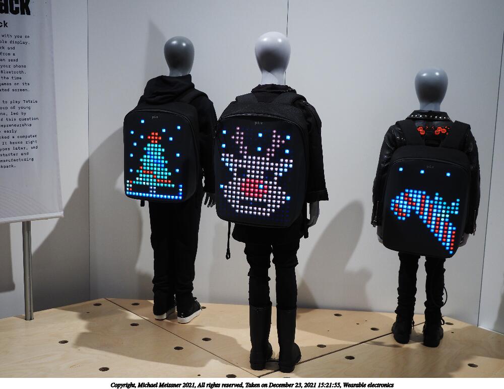 Picture #7: Wearable electronics #7 Thumb: 500x375, 50,870 bytes (50K) Small: 1000x772, 120,642 bytes (118K), (html file) Copyright, Michael Meissner 2021, All rights reserved Olympus E-M5-III camera with Olympus-m43 12-40mm f/2.8 lens f/3.2, ISO 200, 1/80 sec, 12.0mm, auto mode, vivid color, matrix metering, bias -0.3, IS Auto, noise reduction auto 35mm equivalent focal length 24.0mm Programs used: crop, raw therapee Taken by Michael Meissner on December 23, 2021 15:24:18 Last modified on January 21, 2022 at 01:10 |