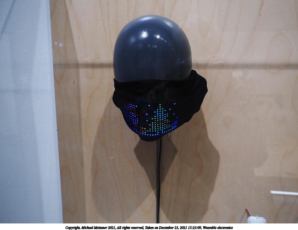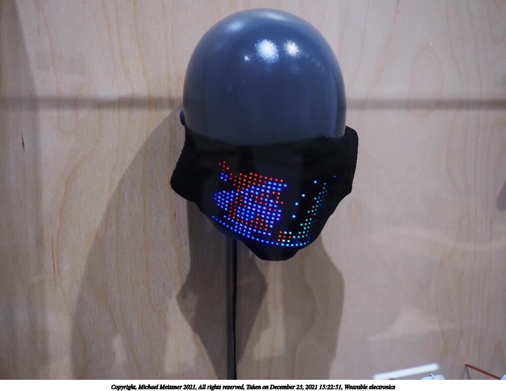 Picture #2: Wearable electronics #2 Thumb: 375x500, 42,840 bytes (42K) Small: 750x1022, 92,015 bytes (90K), (html file) Copyright, Michael Meissner 2021, All rights reserved Olympus E-M5-III camera with Olympus-m43 12-40mm f/2.8 lens f/2.8, ISO 800, 1/60 sec, 23.0mm, auto mode, vivid color, matrix metering, bias -0.3, IS Auto, noise reduction auto 35mm equivalent focal length 46.0mm Programs used: crop, raw therapee, rotate left Taken by Michael Meissner on December 23, 2021 15:21:30 Last modified on January 21, 2022 at 01:08 |