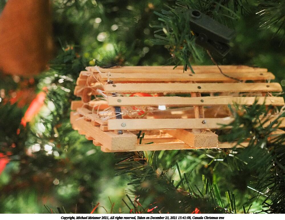 Picture #136: Canada Christmas tree #4 Thumb: 500x375, 71,520 bytes (70K) Small: 1000x772, 190,848 bytes (187K), (html file) Copyright, Michael Meissner 2021, All rights reserved Olympus E-M5-III camera with Olympus-m43 12-40mm f/2.8 lens f/2.8, ISO 2000, 1/80 sec, 36.0mm, auto mode, vivid color, matrix metering, bias -0.3, digital zoom x2, IS Auto, noise reduction auto 35mm equivalent focal length 144.0mm, digital zoom x2 Programs used: crop, raw therapee Taken by Michael Meissner on December 23, 2021 15:40:46 Last modified on January 21, 2022 at 01:14 |