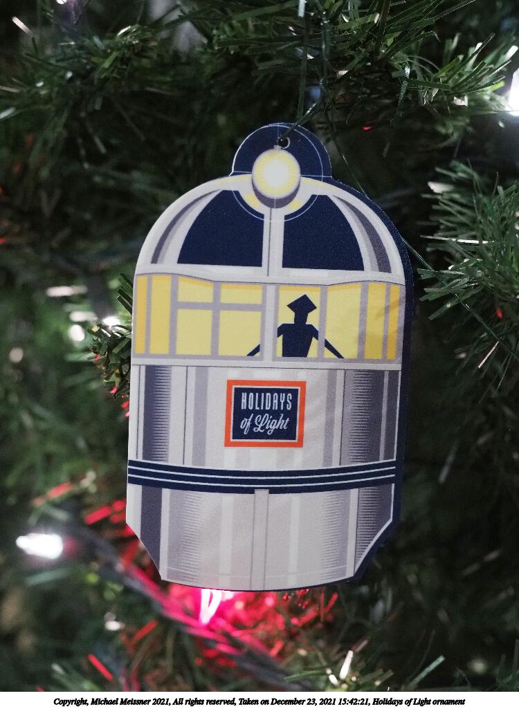 Picture #138: Holidays of Light ornament Thumb: 375x500, 55,695 bytes (55K) Small: 750x1022, 132,475 bytes (130K), (html file) Copyright, Michael Meissner 2021, All rights reserved Olympus E-M5-III camera with Olympus-m43 12-40mm f/2.8 lens f/2.8, ISO 2000, 1/60 sec, 26.0mm, auto mode, vivid color, matrix metering, bias -0.3, IS Auto, noise reduction auto 35mm equivalent focal length 52.0mm Programs used: crop, raw therapee, rotate left Taken by Michael Meissner on December 23, 2021 15:42:21 Last modified on January 21, 2022 at 01:16 |