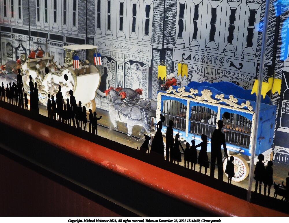 Picture #24: Circus parade #2 Thumb: 500x375, 70,375 bytes (69K) Small: 1000x772, 194,884 bytes (191K), (html file) Copyright, Michael Meissner 2021, All rights reserved Olympus E-M5-III camera with Olympus-m43 12-40mm f/2.8 lens f/2.8, ISO 1600, 1/60 sec, 26.0mm, auto mode, vivid color, matrix metering, bias -0.3, IS Auto, noise reduction auto 35mm equivalent focal length 52.0mm Programs used: crop, raw therapee Taken by Michael Meissner on December 23, 2021 15:43:39 Last modified on January 21, 2022 at 01:19 |