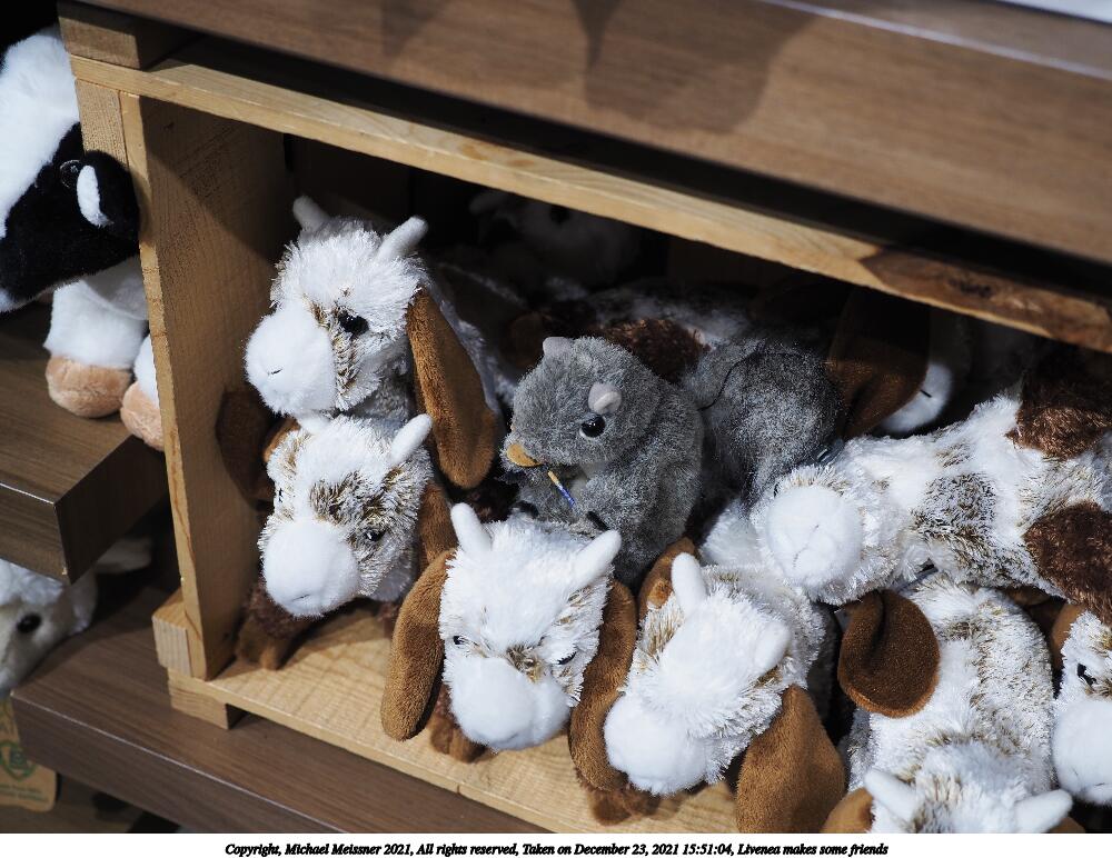 Picture #9: Livenea makes some friends Thumb: 500x375, 58,559 bytes (58K) Small: 1000x772, 152,087 bytes (149K), (html file) Copyright, Michael Meissner 2021, All rights reserved Olympus E-M5-III camera with Olympus-m43 12-40mm f/2.8 lens f/2.8, ISO 200, 1/60 sec, 22.0mm, auto mode, vivid color, matrix metering, bias -0.3, IS Auto, noise reduction auto 35mm equivalent focal length 44.0mm Programs used: crop, raw therapee Taken by Michael Meissner on December 23, 2021 15:51:04 Last modified on January 21, 2022 at 01:23 |
