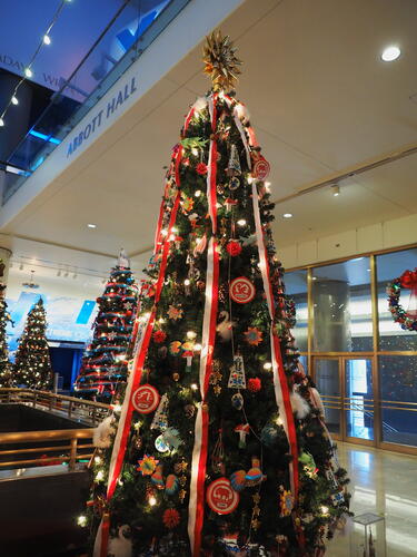 Picture #8: Chicago Sky Christmas tree Thumb: 375x500, 59,271 bytes (58K) Small: 750x1022, 142,518 bytes (140K), (html file) Copyright, Michael Meissner 2021, All rights reserved Olympus E-M5-III camera with Olympus-m43 12-40mm f/2.8 lens f/2.8, ISO 1000, 1/60 sec, 12.0mm, auto mode, vivid color, matrix metering, IS Auto 35mm equivalent focal length 24.0mm Programs used: crop, raw therapee, rotate left Taken by Michael Meissner on December 23, 2021 12:22:15 Last modified on January 18, 2022 at 00:46 |