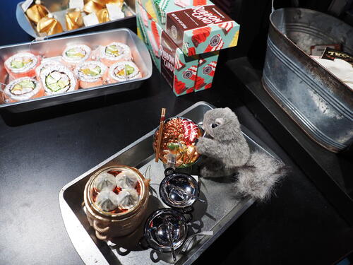 Picture #6: Nutzo with sushi ornaments Thumb: 500x375, 64,412 bytes (63K) Small: 1000x772, 170,786 bytes (167K), (html file) Copyright, Michael Meissner 2021, All rights reserved Olympus E-M5-III camera with Olympus-m43 12-40mm f/2.8 lens f/2.8, ISO 320, 1/60 sec, 12.0mm, auto mode, vivid color, matrix metering, bias -0.3, IS Auto, noise reduction auto 35mm equivalent focal length 24.0mm Programs used: crop, raw therapee Taken by Michael Meissner on December 23, 2021 14:59:14 Last modified on January 21, 2022 at 01:03 |