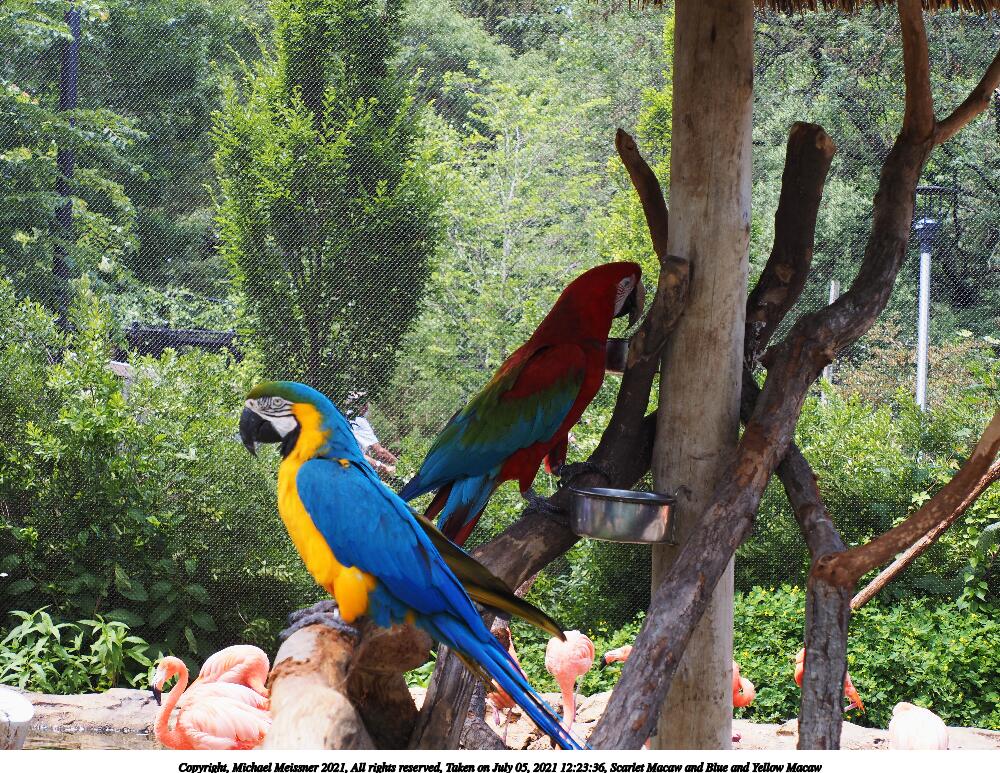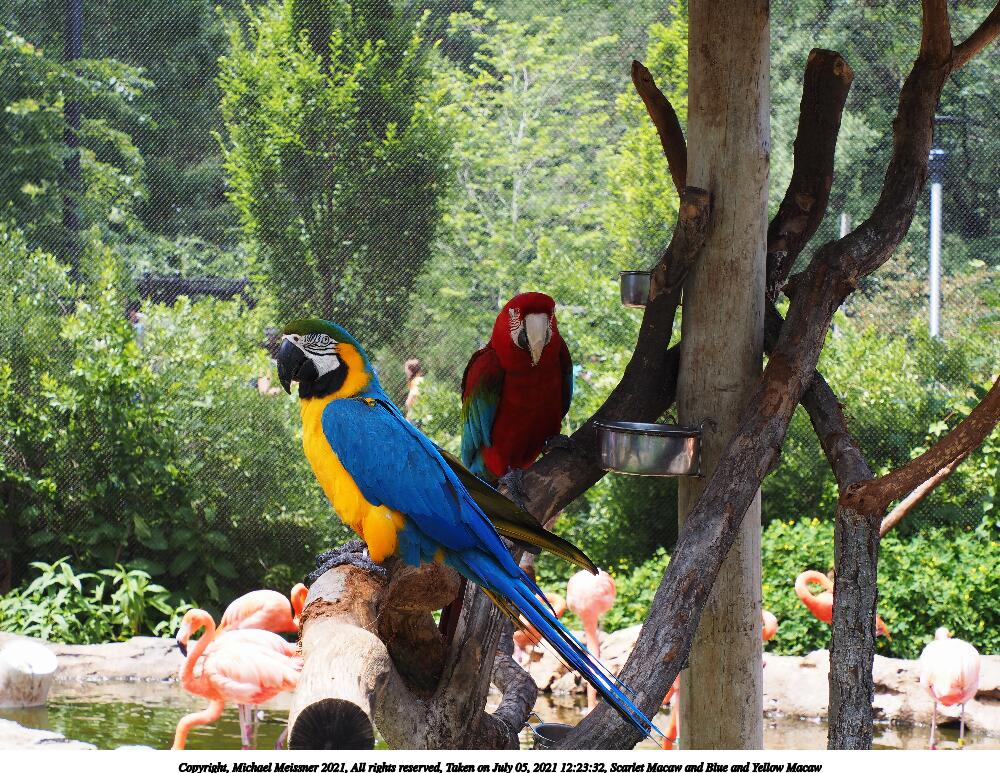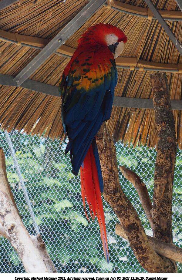 Picture #5: Scarlet Macaw and Blue and Yellow Macaw #2 Thumb: 500x375, 89,380 bytes (88K) Small: 1000x773, 297,028 bytes (291K), (html file) Copyright, Michael Meissner 2021, All rights reserved Olympus E-M5-III camera with Olympus-m43 12-200mm f/3.5-6.3 lens f/7.1, ISO 200, 1/125 sec, 40.0mm, auto mode, vivid color, matrix metering, bias -0.3, IS Auto 35mm equivalent focal length 80.0mm Programs used: crop, raw therapee Taken by Michael Meissner on July 05, 2021 12:23:36 Last modified on August 01, 2021 at 17:46 |