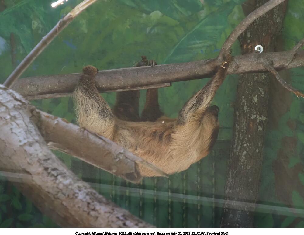Picture #1: Two-toed Sloth Thumb: 500x375, 49,750 bytes (49K) Small: 1000x773, 136,287 bytes (134K), (html file) Copyright, Michael Meissner 2021, All rights reserved Olympus E-M5-III camera with Olympus-m43 12-200mm f/3.5-6.3 lens f/6.3, ISO 200, 1/160 sec, 70.0mm, auto mode, vivid color, matrix metering, bias -0.3, auto + manual focus, IS Auto 35mm equivalent focal length 140.0mm Programs used: crop, raw therapee Taken by Michael Meissner on July 05, 2021 12:50:03 Last modified on August 02, 2021 at 21:34 |