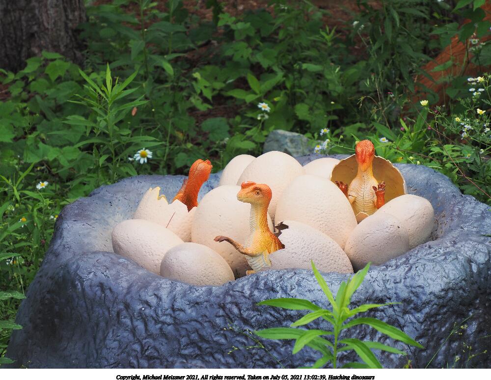 Picture #4: Hatching dinosaurs Thumb: 500x375, 64,518 bytes (64K) Small: 1000x773, 165,623 bytes (162K), (html file) Copyright, Michael Meissner 2021, All rights reserved Olympus E-M5-III camera with Olympus-m43 12-200mm f/3.5-6.3 lens f/8.0, ISO 200, 1/250 sec, 75.0mm, auto mode, vivid color, matrix metering, bias -0.3, auto + manual focus, IS Auto 35mm equivalent focal length 150.0mm Programs used: crop, raw therapee Taken by Michael Meissner on July 05, 2021 13:02:39 Last modified on August 02, 2021 at 21:54 |