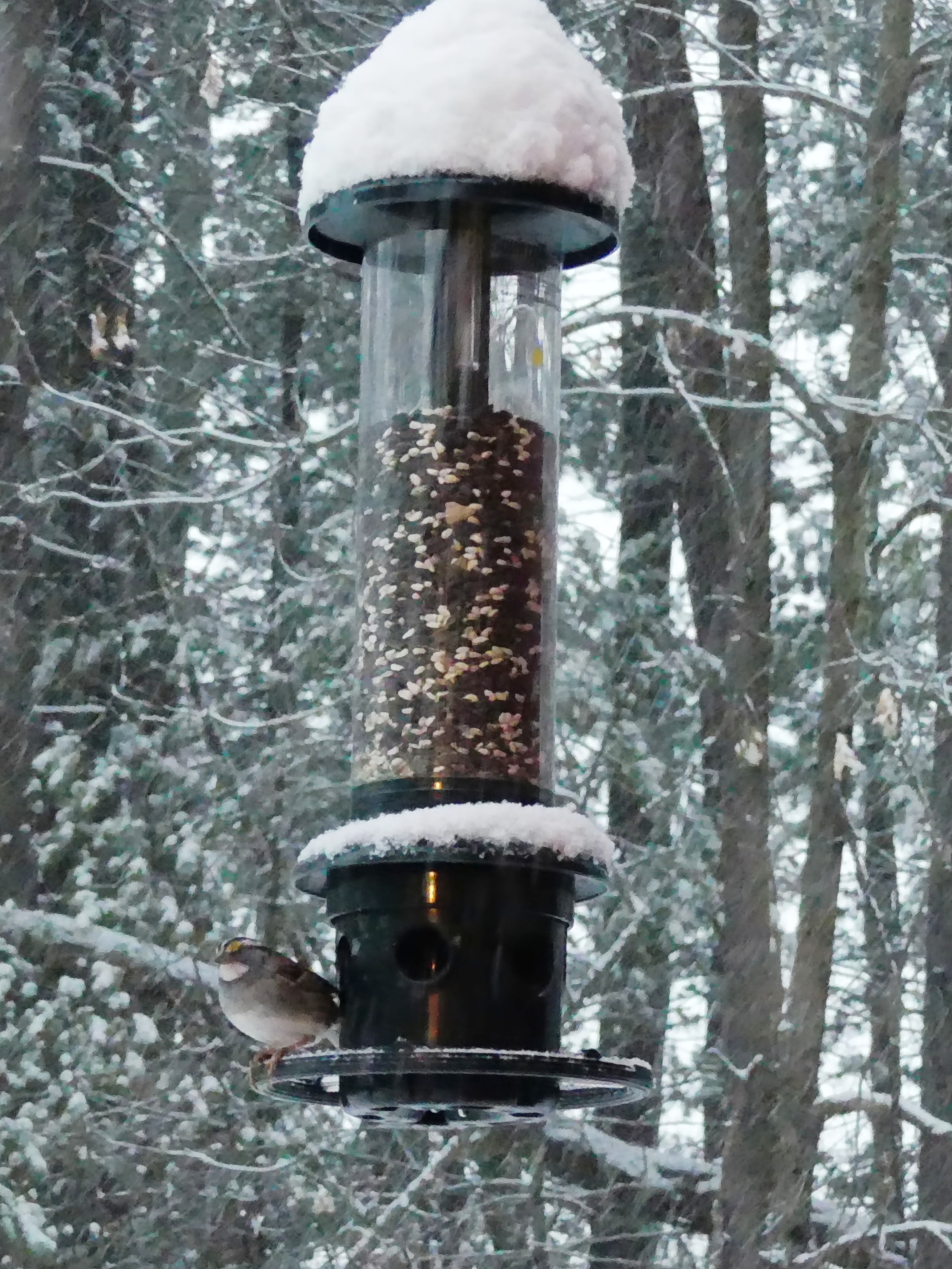 Picture #3: Bird at the feeder #3 Small: 533x822, 114,873 bytes (113K), (html file) Large: 1600x2400, 2,156,153 bytes (2.1M), (html file) Copyright, Michael Meissner 2022, All rights reserved Panasonic FZ300 camera f/2.8, ISO 1600, 1/60 sec, 17.4mm, auto mode, auto wb (8400), matrix metering, bias -0.3, image stabilization, normal color mode 35mm equivalent focal length 97.0mm Extra equipment used: Tripod, control via smartphone radio Programs used: crop, gimp, raw therapee Taken by Michael Meissner on March 09, 2022 18:47:05 Last modified on March 10, 2022 at 00:23 |