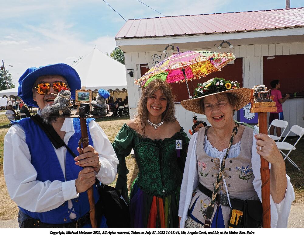 Picture #4: Me, Angela Cook, and Liz at the Maine Ren. Faire #2 Small: 1000x772, 199,926 bytes (196K), (html file) Large: 5000x3750, 4,846,442 bytes (4.6M), (html file) Copyright, Michael Meissner 2022, All rights reserved OM OM1 camera with Olympus-m43 12-200mm f/3.5-6.3 lens f/8.0, ISO 200, 1/320 sec, 12.0mm, auto mode, vivid color, center weight metering, IS Auto, anti-shock 35mm equivalent focal length 24.0mm Programs used: crop, raw therapee Taken by Michael Meissner on July 31, 2022 14:18:46 Last modified on January 01, 2023 at 23:45 |