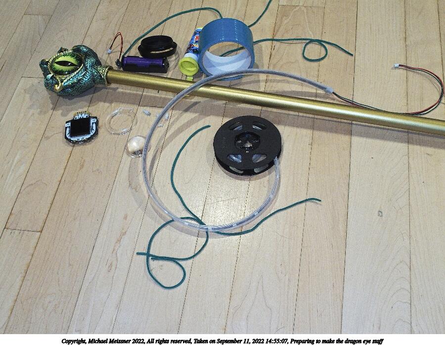 Picture #1: Preparing to make the dragon eye staff Small: 900x697, 138,082 bytes (135K), (html file) Large: 3600x2700, 3,195,622 bytes (3.0M), (html file) Copyright, Michael Meissner 2022, All rights reserved Olympus Stylus-1 camera f/2.8, ISO 400, flash, 1/40 sec, 8.1mm, auto mode, natural color, center weight metering, IS Auto 35mm equivalent focal length 38.0mm Programs used: crop, raw therapee Taken by Michael Meissner on September 11, 2022 14:54:44 Last modified on September 11, 2022 at 20:22 |