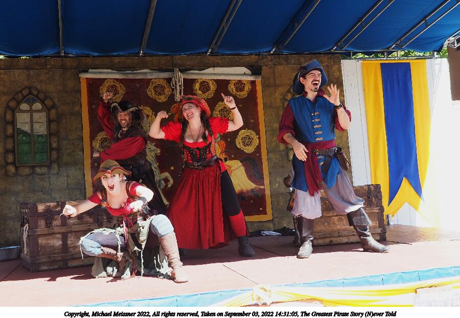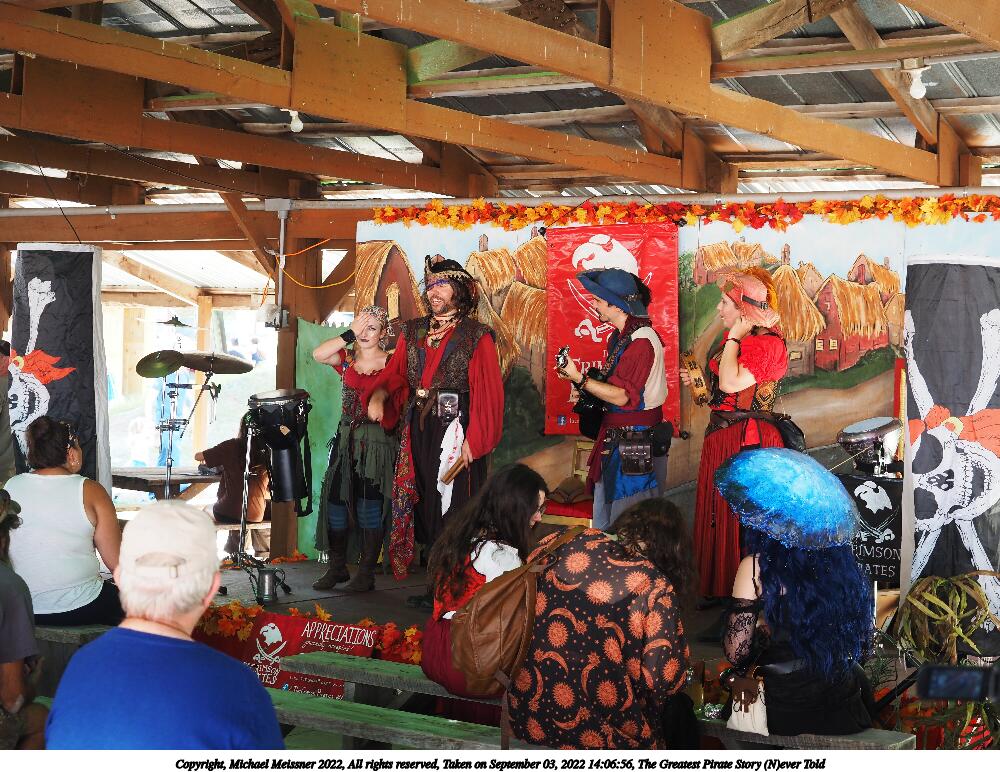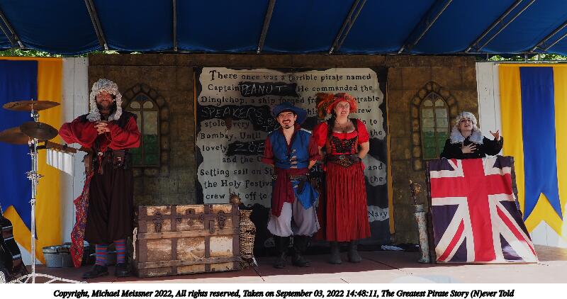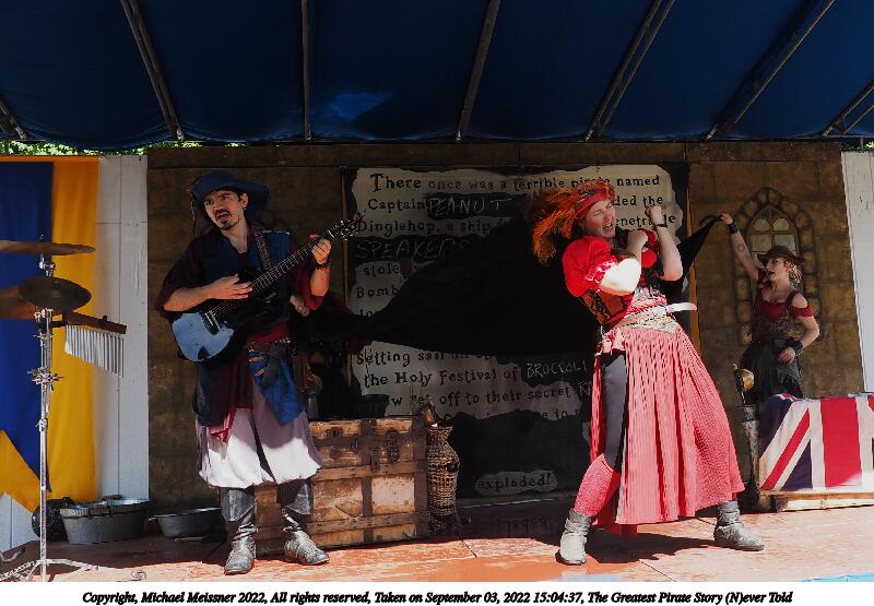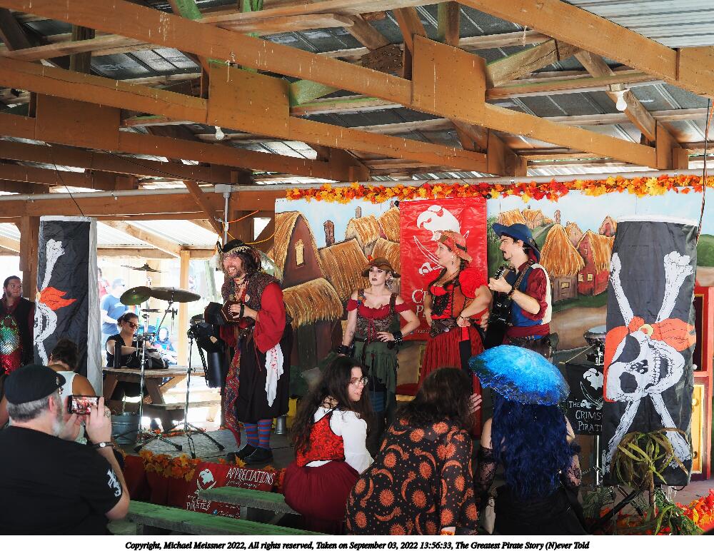 Picture #4: The Greatest Pirate Story (N)ever Told #4 Small: 1000x772, 208,613 bytes (204K), (html file) Large: 5000x3750, 4,472,348 bytes (4.3M), (html file) Copyright, Michael Meissner 2022, All rights reserved Olympus E-M5-III camera with Olympus-m43 12-40mm f/2.8 lens f/2.8, ISO 320, 1/60 sec, 31.0mm, auto mode, vivid color, matrix metering, IS Auto, face detection 35mm equivalent focal length 62.0mm Programs used: crop, raw therapee Taken by Michael Meissner on September 03, 2022 14:06:56 Last modified on January 08, 2023 at 11:12 |