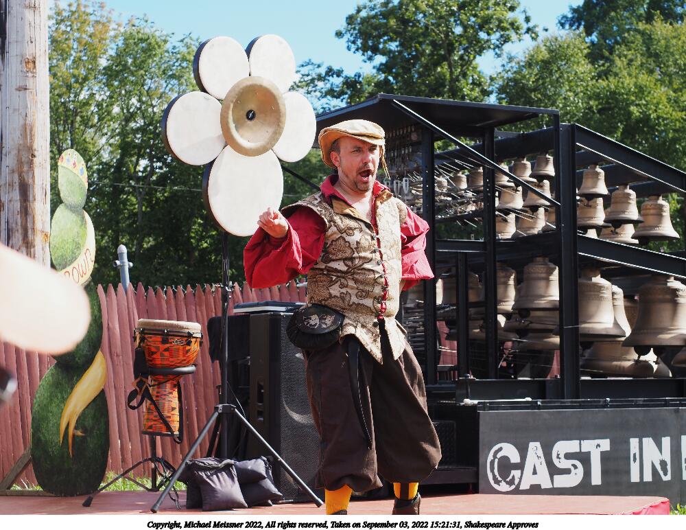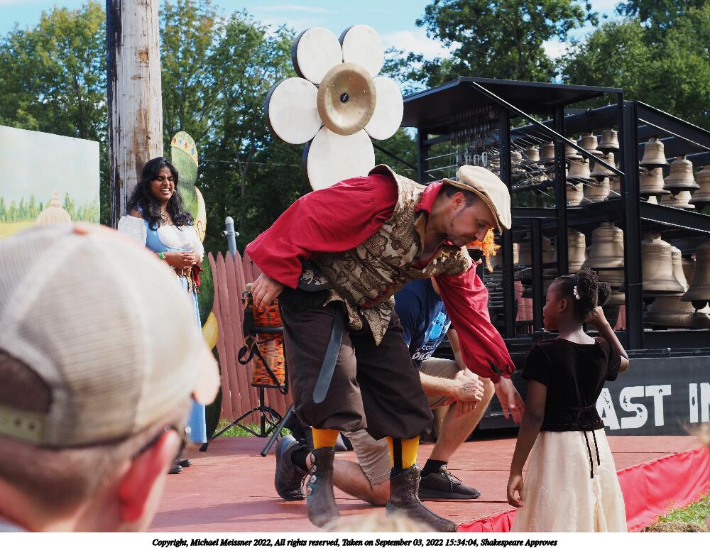 Picture #1: Shakespeare Approves Small: 1000x772, 188,693 bytes (185K), (html file) Large: 5000x3750, 3,681,094 bytes (3.5M), (html file) Copyright, Michael Meissner 2022, All rights reserved Olympus E-M5-III camera with Olympus-m43 12-40mm f/2.8 lens f/5.6, ISO 200, 1/320 sec, 38.0mm, auto mode, vivid color, matrix metering, IS Auto, face detection 35mm equivalent focal length 76.0mm Programs used: crop, raw therapee Taken by Michael Meissner on September 03, 2022 15:21:28 Last modified on January 08, 2023 at 11:26 |