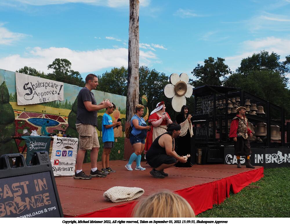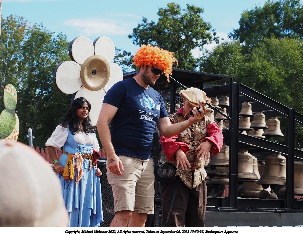 Picture #5: Shakespeare Approves #5 Small: 1000x772, 171,940 bytes (168K), (html file) Large: 5000x3750, 3,707,606 bytes (3.5M), (html file) Copyright, Michael Meissner 2022, All rights reserved Olympus E-M5-III camera with Olympus-m43 12-40mm f/2.8 lens f/6.3, ISO 200, 1/320 sec, 17.0mm, auto mode, vivid color, matrix metering, IS Auto, face detection 35mm equivalent focal length 34.0mm Programs used: crop, raw therapee Taken by Michael Meissner on September 03, 2022 15:39:55 Last modified on January 08, 2023 at 11:27 |