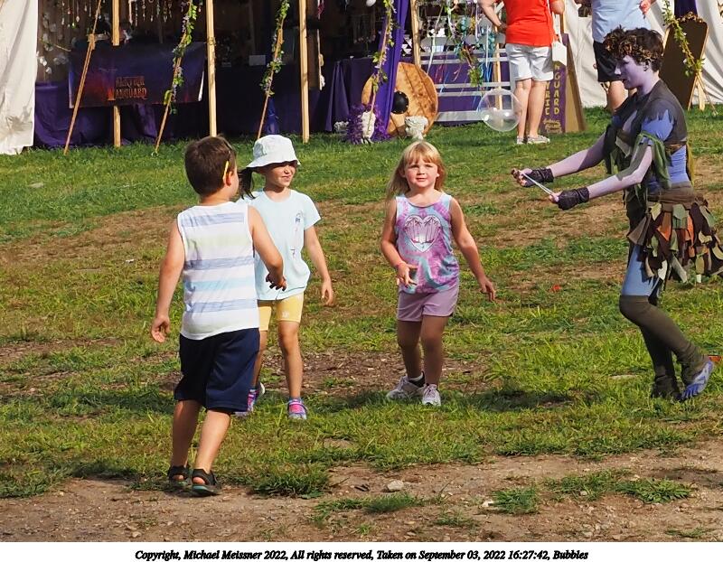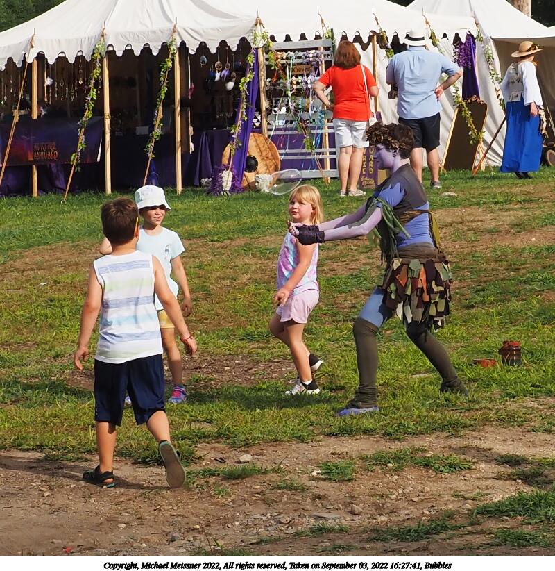 Picture #3: Bubbles #2 Small: 800x622, 159,375 bytes (156K), (html file) Large: 2400x1800, 3,283,800 bytes (3.1M), (html file) Copyright, Michael Meissner 2022, All rights reserved Olympus E-M5-III camera with Olympus-m43 12-40mm f/2.8 lens f/7.1, ISO 200, 1/400 sec, 20.0mm, auto mode, vivid color, matrix metering, digital zoom x2, IS Auto, face detection 35mm equivalent focal length 80.0mm, digital zoom x2 Programs used: crop, gimp, raw therapee Taken by Michael Meissner on September 03, 2022 16:27:42 Last modified on January 08, 2023 at 11:30 |