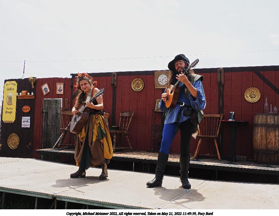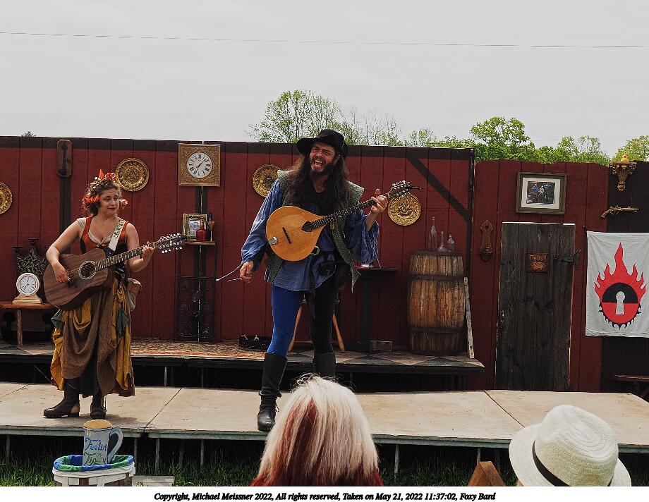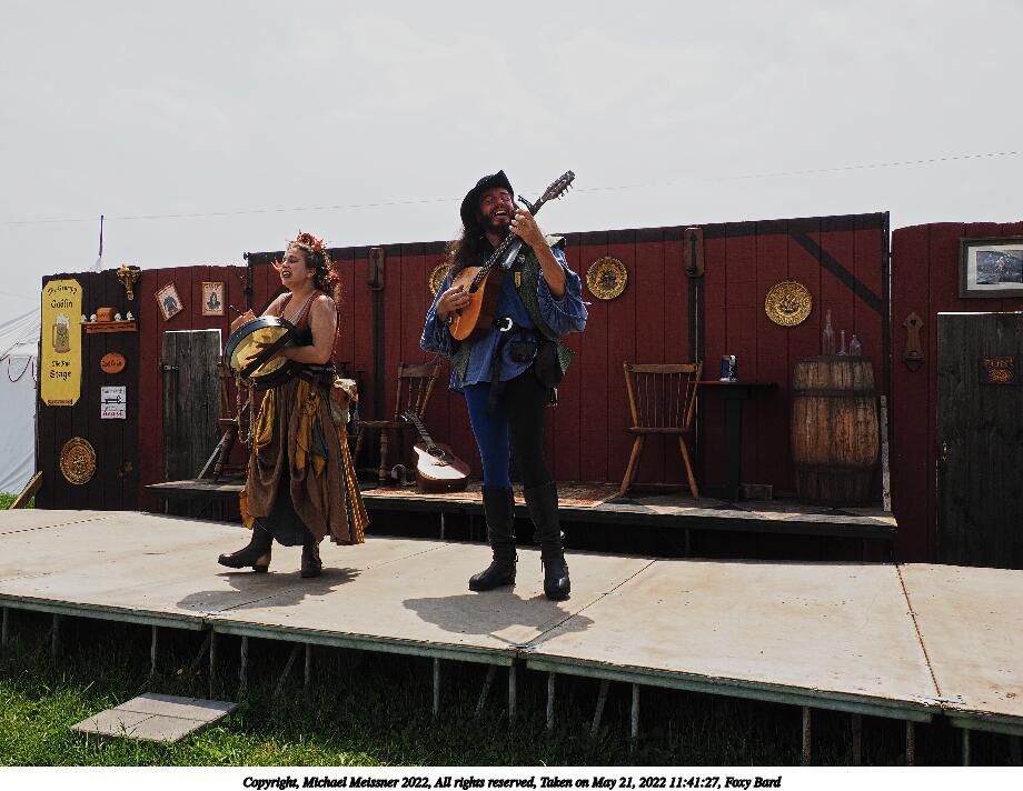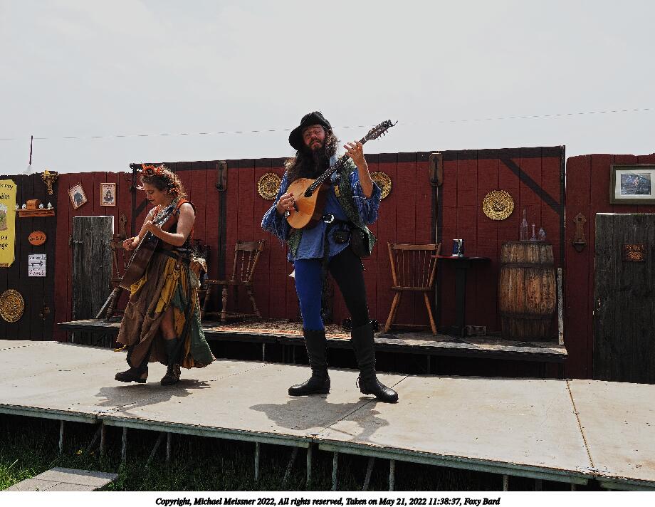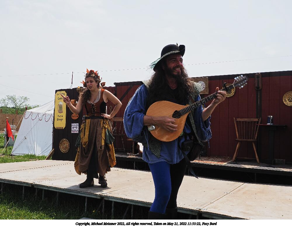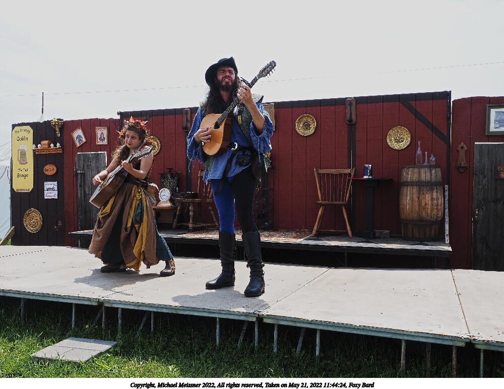 Picture #1: Foxy Bard and apprentice, waiting to go on Small: 920x712, 190,127 bytes (186K), (html file) Large: 4600x3450, 3,545,101 bytes (3.4M), (html file) Copyright, Michael Meissner 2022, All rights reserved Olympus E-M1-I camera with Olympus-m43 12-40mm f/2.8 lens f/8.0, ISO 200, 1/640 sec, 35.0mm, auto mode, vivid color, SHQ, center weight metering, digital zoom x2, IS Auto, noise filter low 35mm equivalent focal length 140.0mm, digital zoom x2 Programs used: crop, raw therapee Taken by Michael Meissner on May 21, 2022 11:11:24 Last modified on December 04, 2022 at 23:42 |