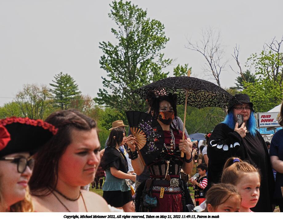 Picture #8: Patron in mask Small: 920x712, 141,273 bytes (138K), (html file) Large: 4600x3450, 3,371,484 bytes (3.2M), (html file) Copyright, Michael Meissner 2022, All rights reserved Olympus E-M1-I camera with Olympus-m43 12-200mm f/3.5-6.3 lens f/9.0, ISO 200, 1/400 sec, 80.0mm, auto mode, vivid color, SHQ, center weight metering, IS Auto, noise filter low 35mm equivalent focal length 160.0mm Programs used: crop, raw therapee Taken by Michael Meissner on May 21, 2022 11:49:15 Last modified on December 11, 2022 at 00:40 |