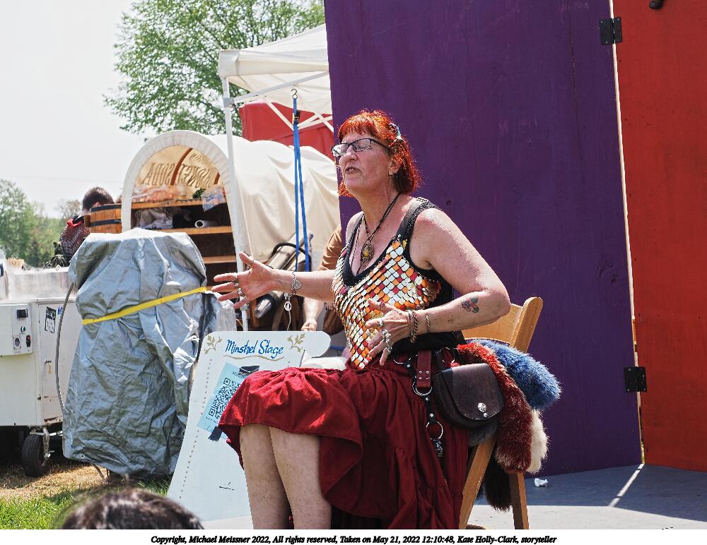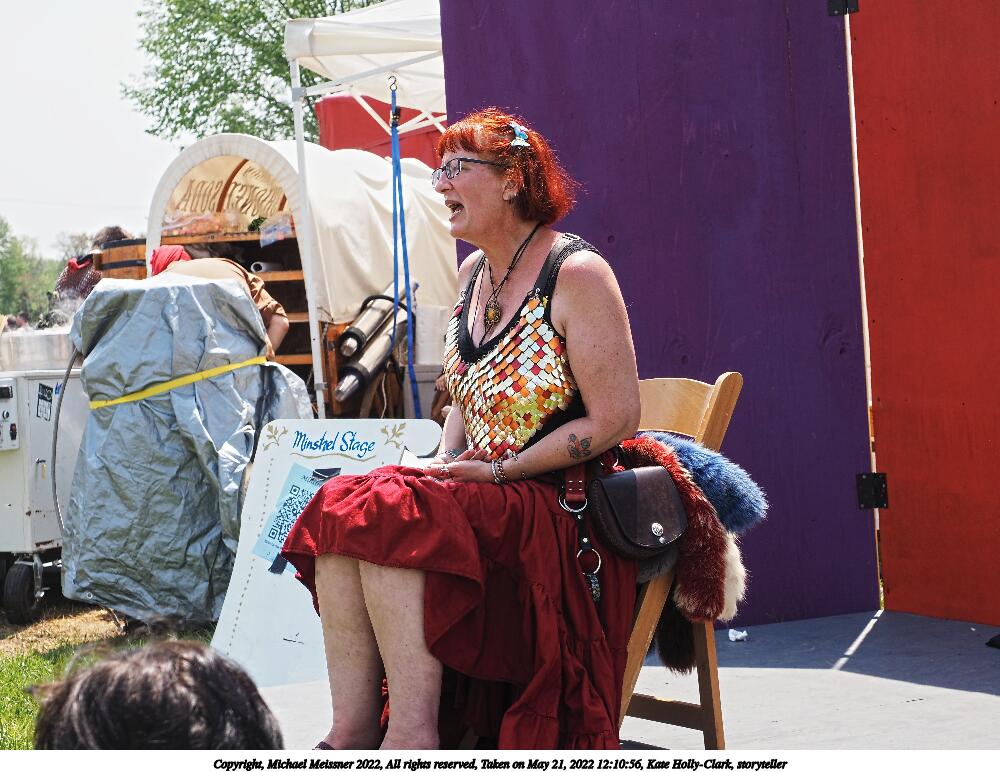 Picture #4: Kate Holly-Clark, storyteller #4 Small: 920x712, 140,105 bytes (137K), (html file) Large: 4600x3450, 3,691,739 bytes (3.5M), (html file) Copyright, Michael Meissner 2022, All rights reserved Olympus E-M1-I camera with Olympus-m43 12-200mm f/3.5-6.3 lens f/9.0, ISO 200, 1/250 sec, 40.0mm, auto mode, vivid color, SHQ, center weight metering, IS Auto, noise filter low, anti-shock 35mm equivalent focal length 80.0mm Programs used: crop, raw therapee Taken by Michael Meissner on May 21, 2022 12:08:11 Last modified on December 11, 2022 at 00:43 |