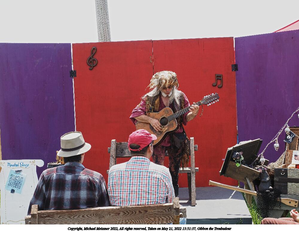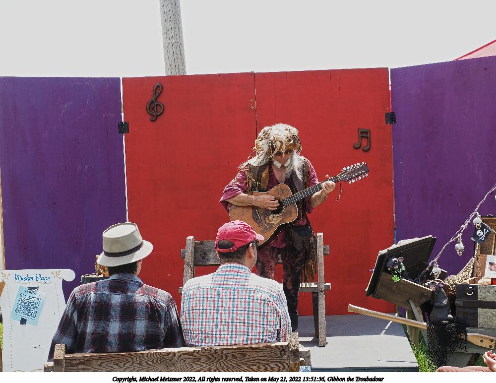 Picture #2: Gibbon the Troubadour #2 Small: 1000x772, 142,245 bytes (139K), (html file) Large: 5000x3750, 3,457,174 bytes (3.3M), (html file) Copyright, Michael Meissner 2022, All rights reserved Olympus E-M5-III camera with Olympus-m43 12-40mm f/2.8 lens f/5.6, ISO 200, 1/320 sec, 34.0mm, auto mode, vivid color, center weight metering, IS Auto, face detection 35mm equivalent focal length 68.0mm Programs used: crop, raw therapee Taken by Michael Meissner on May 21, 2022 13:51:36 Last modified on December 11, 2022 at 01:03 |
