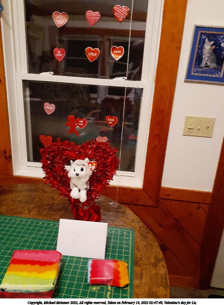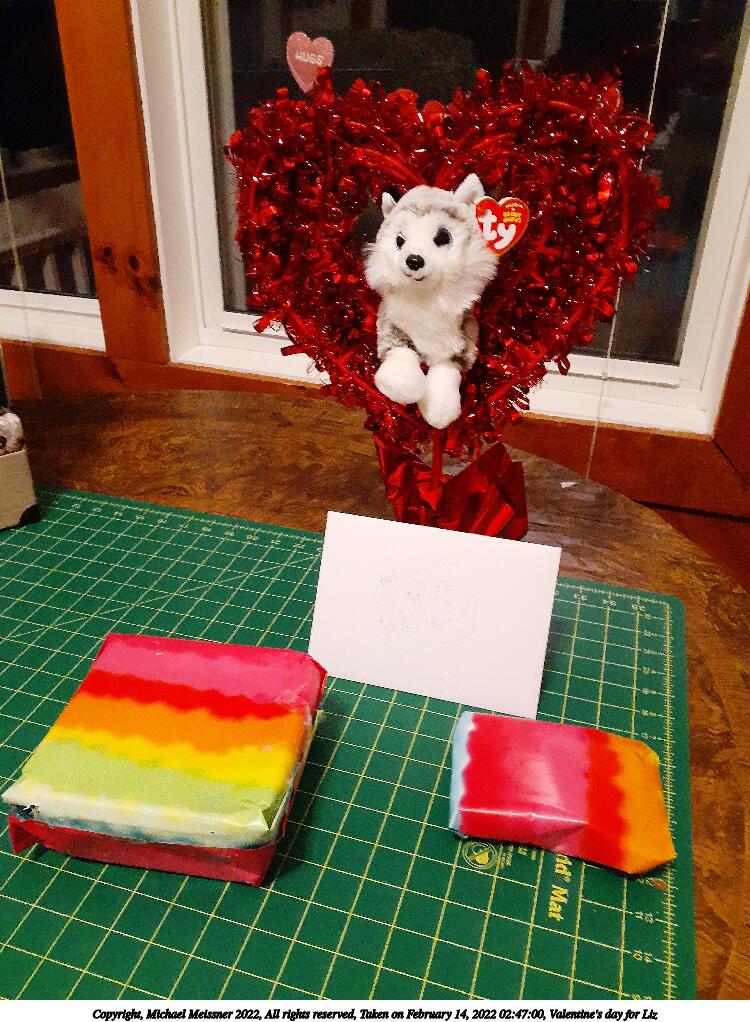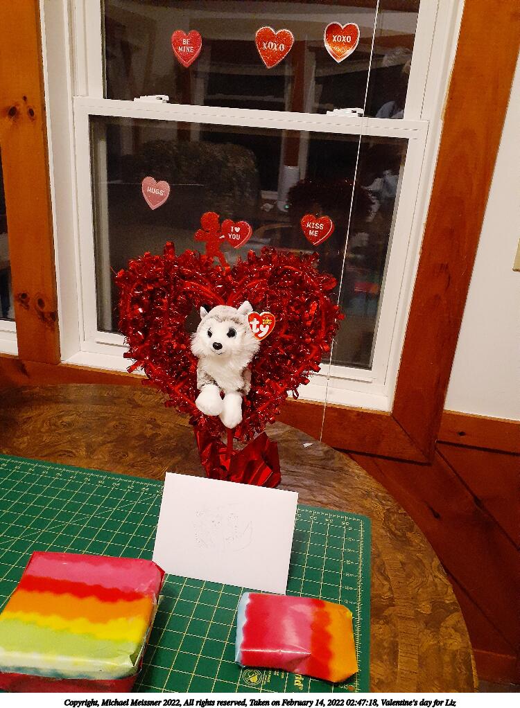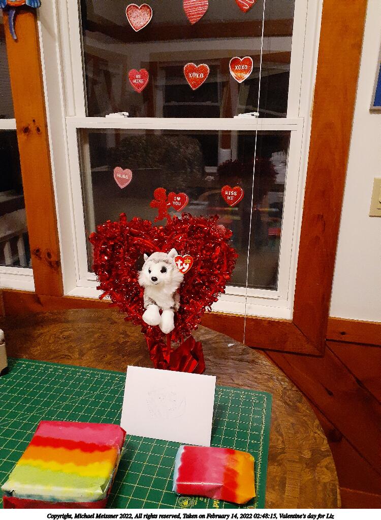 Picture #10: Valentine's day for Liz #2 750x1022, 150,686 bytes (148K), (html file) Copyright, Michael Meissner 2022, All rights reserved Samsung A20 phone f/1.9, ISO 800, 1/20 sec, 3.6mm, auto mode, spot metering 35mm equivalent focal length 27.0mm Programs used: crop, raw therapee, rotate right Taken by Michael Meissner on February 14, 2022 02:47:18 Last modified on February 20, 2022 at 20:29 |