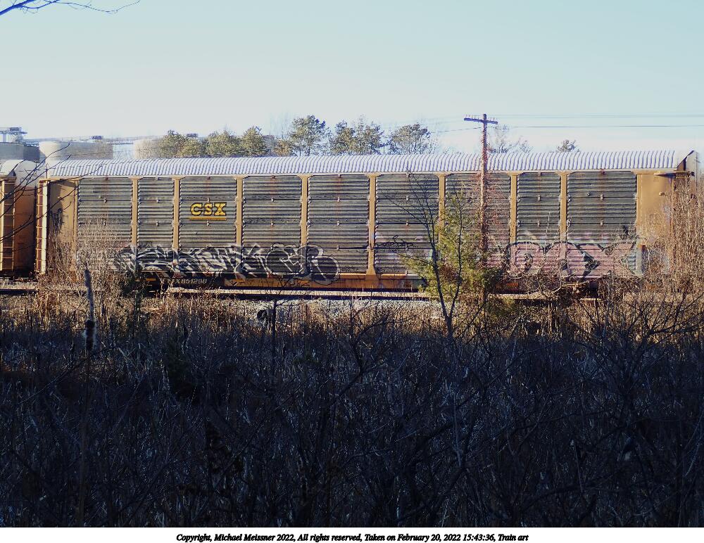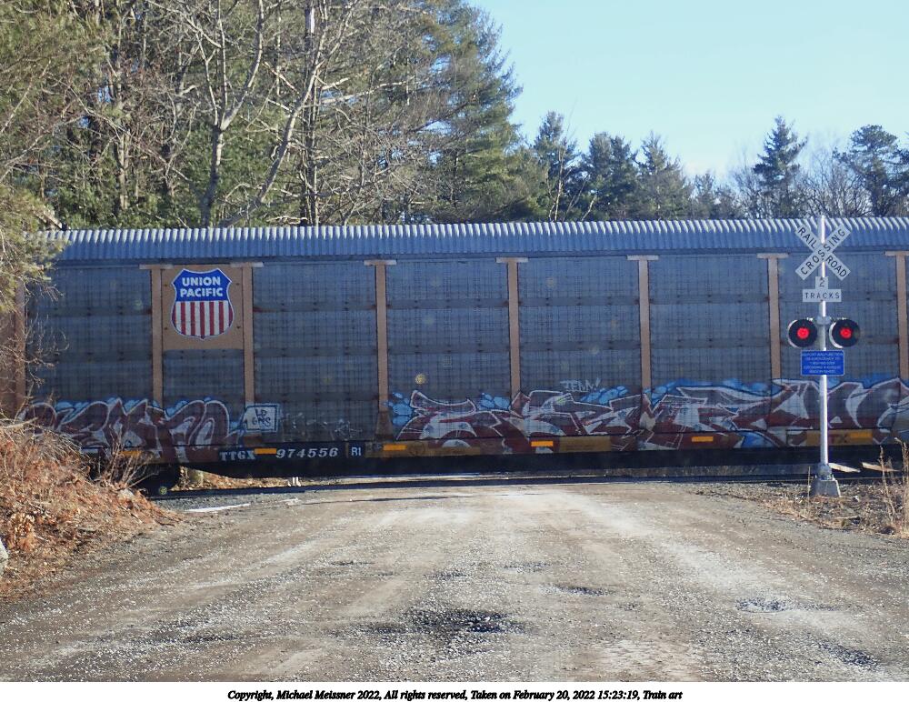 Picture #6: Train art 1000x772, 207,099 bytes (203K), (html file) Copyright, Michael Meissner 2022, All rights reserved Olympus TG-5 camera f/3.8, ISO 100, 1/200 sec, 11.8mm, auto mode, vivid color, SHQ, matrix metering, IS1 (All Direction Shake IS), noise reduction 4 35mm equivalent focal length 65.0mm Programs used: crop, raw therapee Taken by Michael Meissner on February 20, 2022 15:23:19 Last modified on February 20, 2022 at 20:35 |