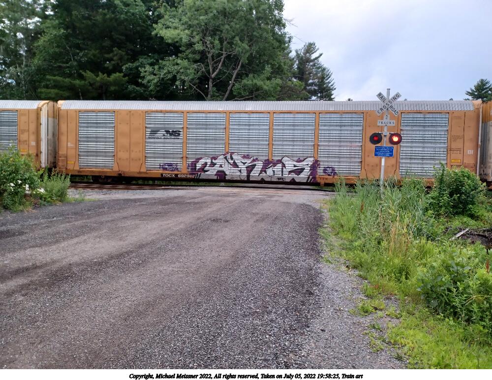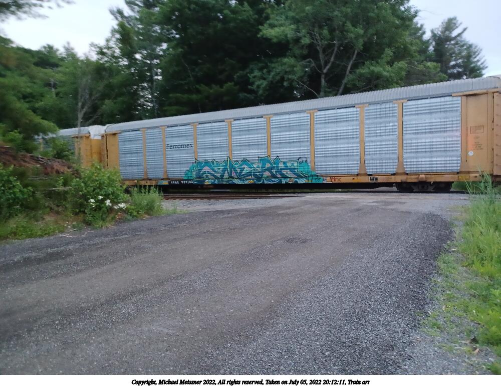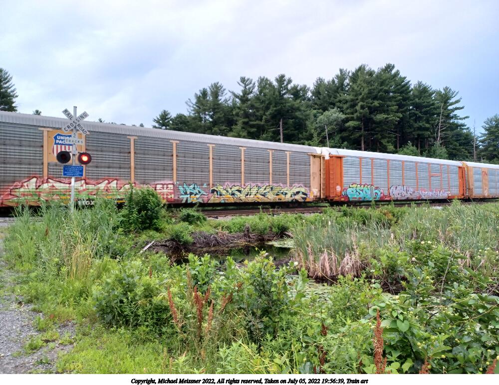 Picture #58: Train art #6 1000x772, 158,314 bytes (155K), (html file) Copyright, Michael Meissner 2022, All rights reserved Samsung A32 5G phone f/1.8, ISO 640, 1/24 sec, 4.6mm, auto mode, center weight metering 35mm equivalent focal length 25.0mm Taken by Michael Meissner on July 05, 2022 20:12:11 Last modified on July 08, 2022 at 13:07 |