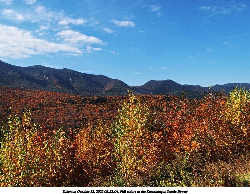 Picture #122: Fall colors at the Kancamagus Scenic Byway #9 1000x772, 287,354 bytes (281K), (html file) OM OM1 camera with Olympus-m43 12-200mm f/3.5-6.3 lens f/9.0, ISO 200, 1/400 sec, 12.0mm, auto mode, vivid color, matrix metering, IS Auto, face detection 35mm equivalent focal length 24.0mm Programs used: crop, gimp, raw therapee Taken by Michael Meissner on October 12, 2022 10:00:45 Last modified on November 07, 2022 at 02:00 |