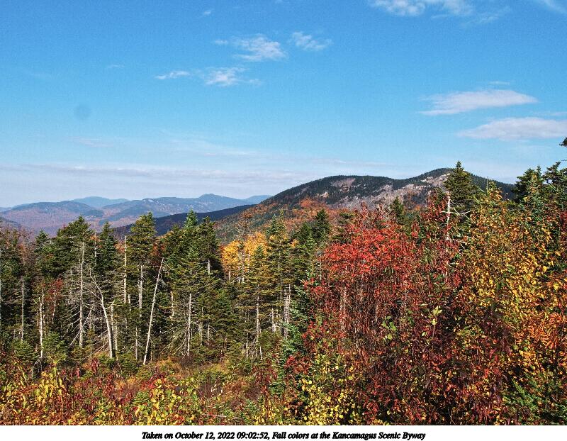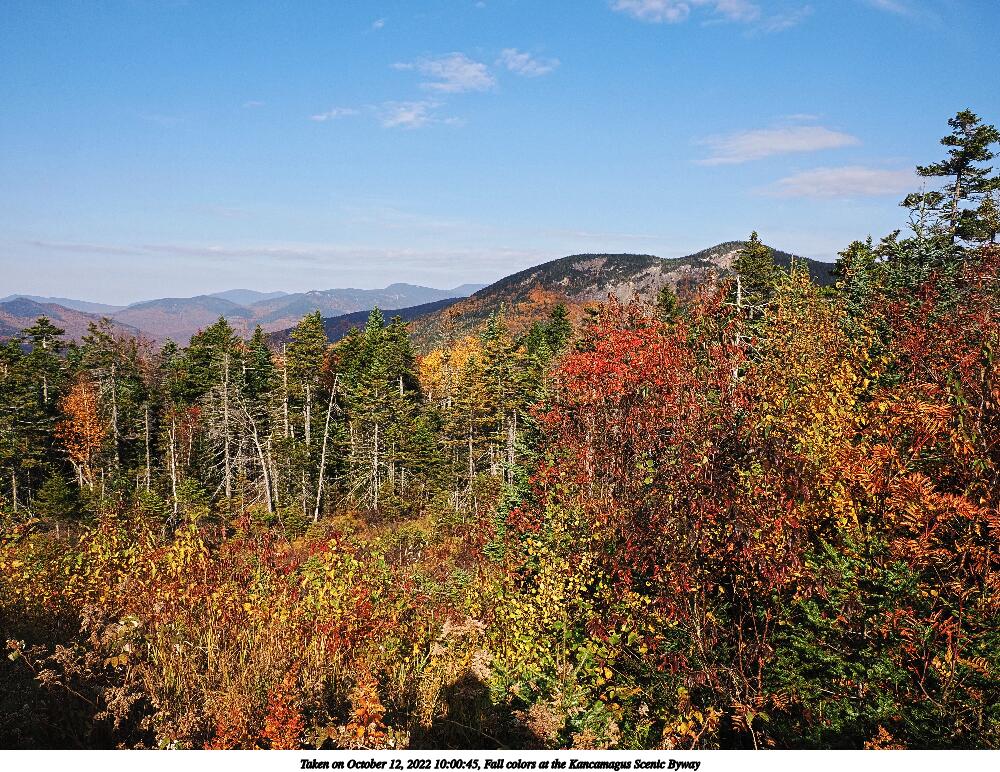 Picture #121: Fall colors at the Kancamagus Scenic Byway #10 1000x772, 298,380 bytes (292K), (html file) OM OM1 camera with Olympus-m43 12-200mm f/3.5-6.3 lens f/9.0, ISO 200, 1/250 sec, 25.0mm, auto mode, vivid color, matrix metering, IS Auto, face detection, anti-shock 35mm equivalent focal length 50.0mm Programs used: crop, gimp, raw therapee Taken by Michael Meissner on October 12, 2022 10:02:17 Last modified on November 07, 2022 at 02:00 |