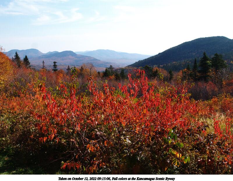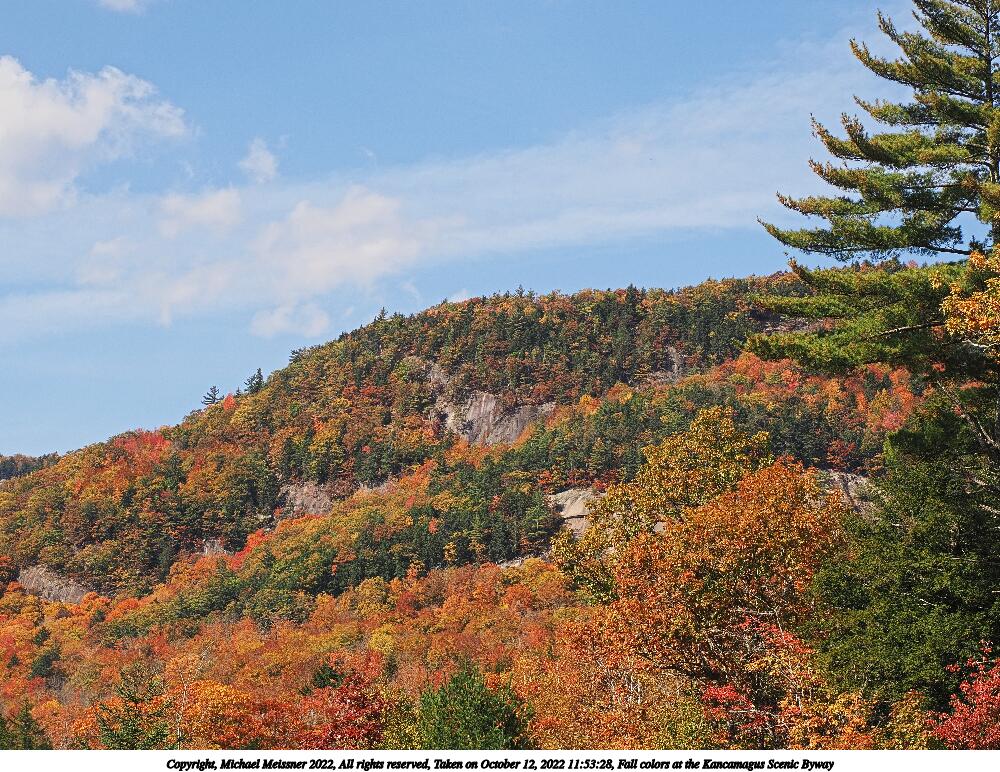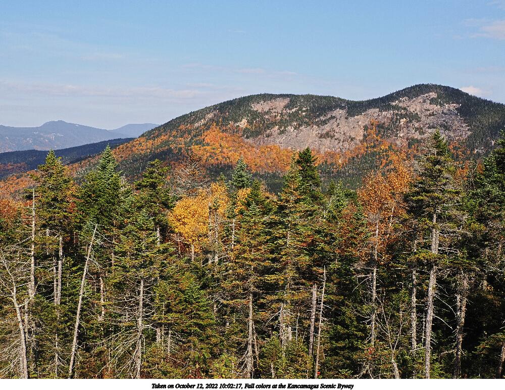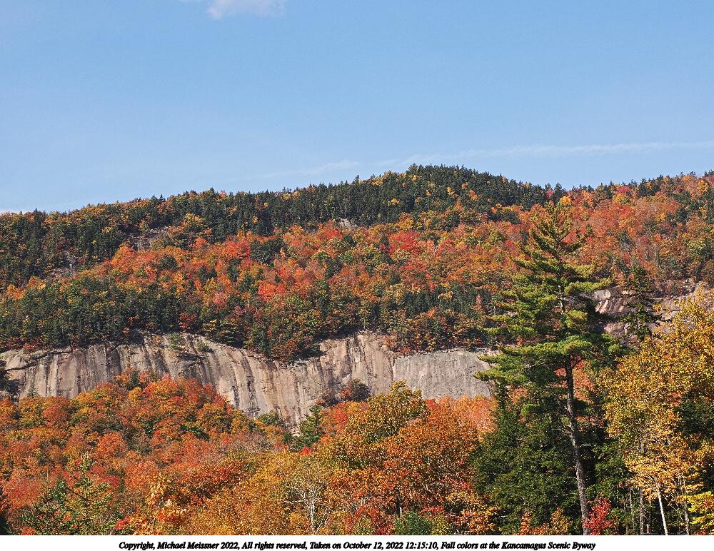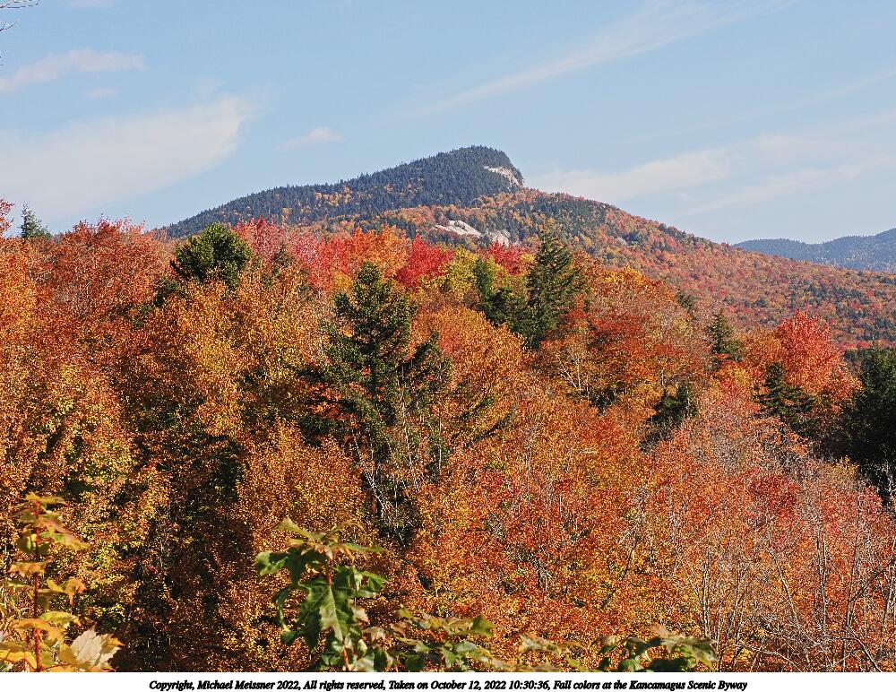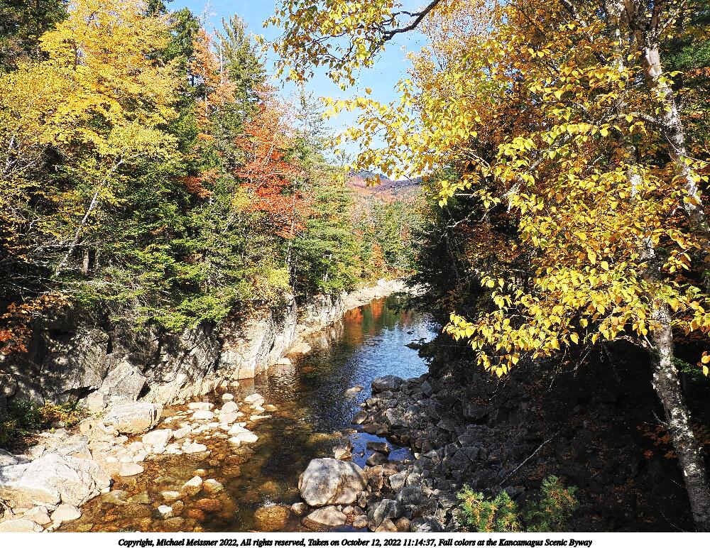 Picture #100: Fall colors at the Kancamagus Scenic Byway #21 1000x772, 381,461 bytes (373K), (html file) Copyright, Michael Meissner 2022, All rights reserved OM OM1 camera with Olympus-m43 12-200mm f/3.5-6.3 lens f/7.1, ISO 200, 1/250 sec, 12.0mm, auto mode, vivid color, matrix metering, IS Auto, anti-shock 35mm equivalent focal length 24.0mm Programs used: crop, raw therapee Taken by Michael Meissner on October 12, 2022 11:14:37 Last modified on November 07, 2022 at 17:38 |