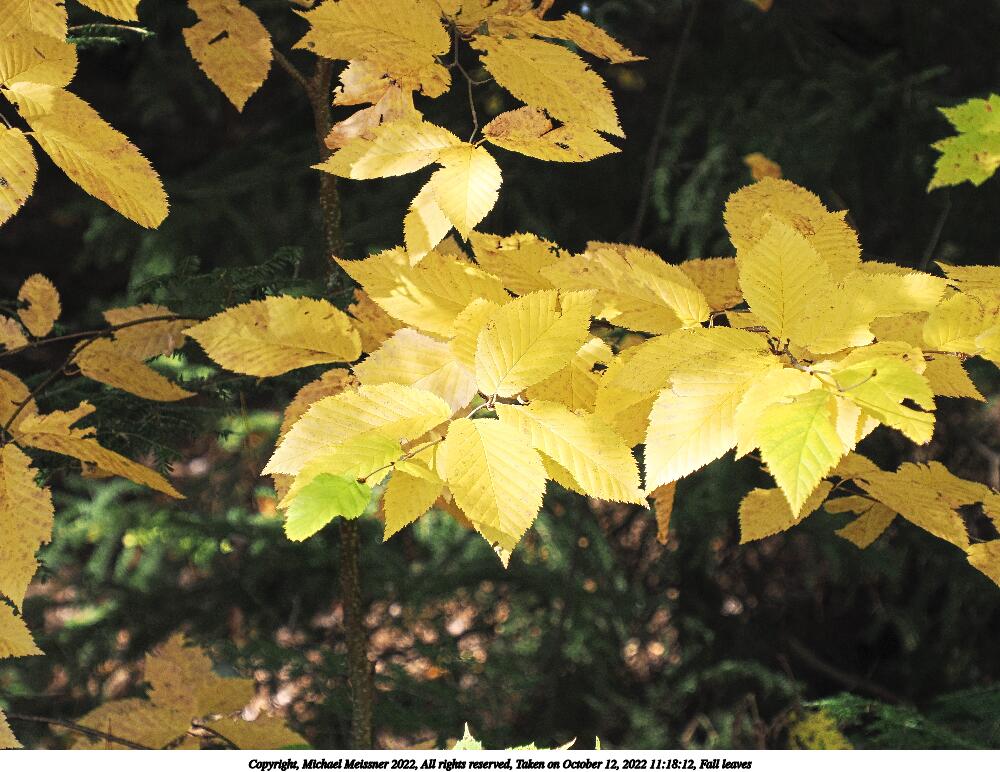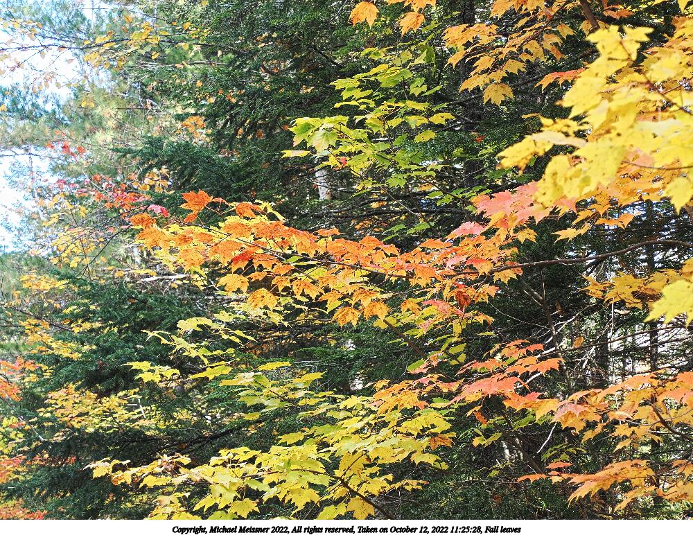 Picture #94: Fall leaves #4 1000x772, 156,617 bytes (153K), (html file) Copyright, Michael Meissner 2022, All rights reserved OM OM1 camera with Olympus-m43 12-200mm f/3.5-6.3 lens f/6.3, ISO 400, 1/160 sec, 75.0mm, auto mode, vivid color, matrix metering, IS Auto, anti-shock 35mm equivalent focal length 150.0mm Programs used: crop, raw therapee Taken by Michael Meissner on October 12, 2022 11:18:12 Last modified on November 07, 2022 at 17:44 |