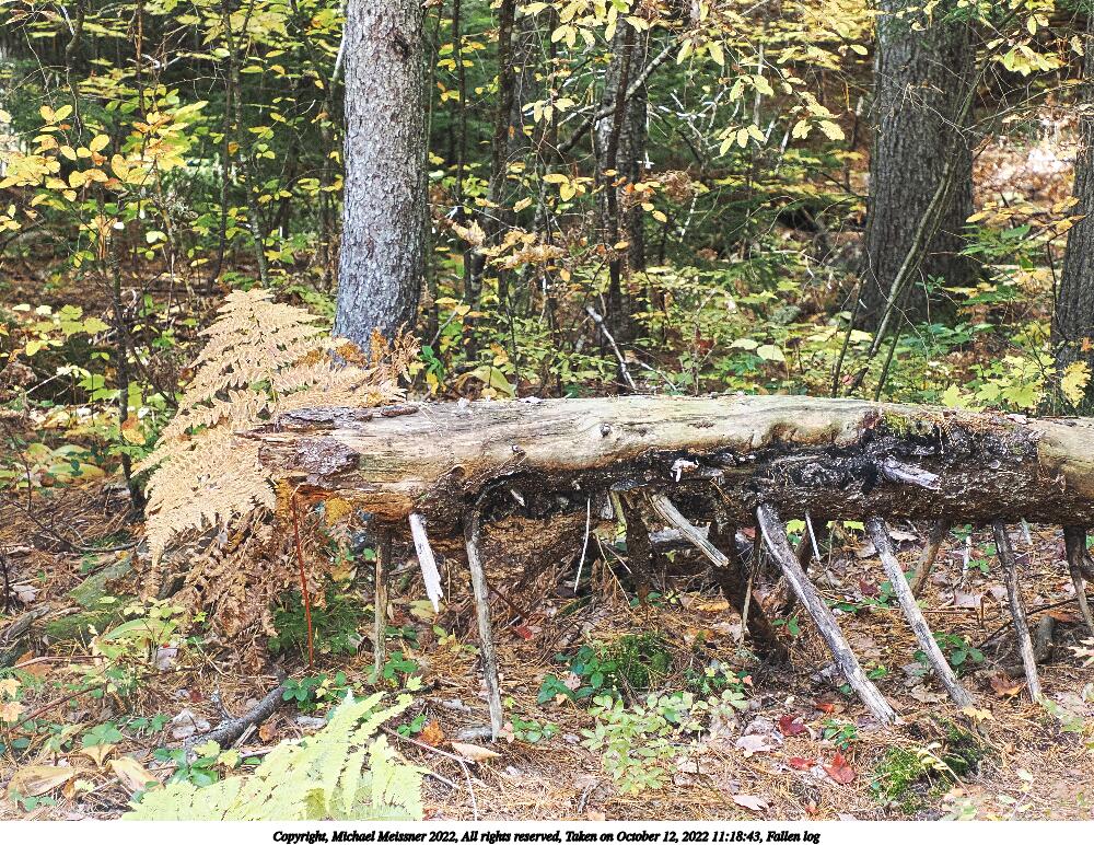 Picture #92: Fallen log #2 1000x772, 401,822 bytes (393K), (html file) Copyright, Michael Meissner 2022, All rights reserved OM OM1 camera with Olympus-m43 12-200mm f/3.5-6.3 lens f/5.0, ISO 640, 1/60 sec, 28.0mm, auto mode, vivid color, matrix metering, IS Auto, anti-shock 35mm equivalent focal length 56.0mm Programs used: crop, raw therapee Taken by Michael Meissner on October 12, 2022 11:20:02 Last modified on November 07, 2022 at 17:45 |