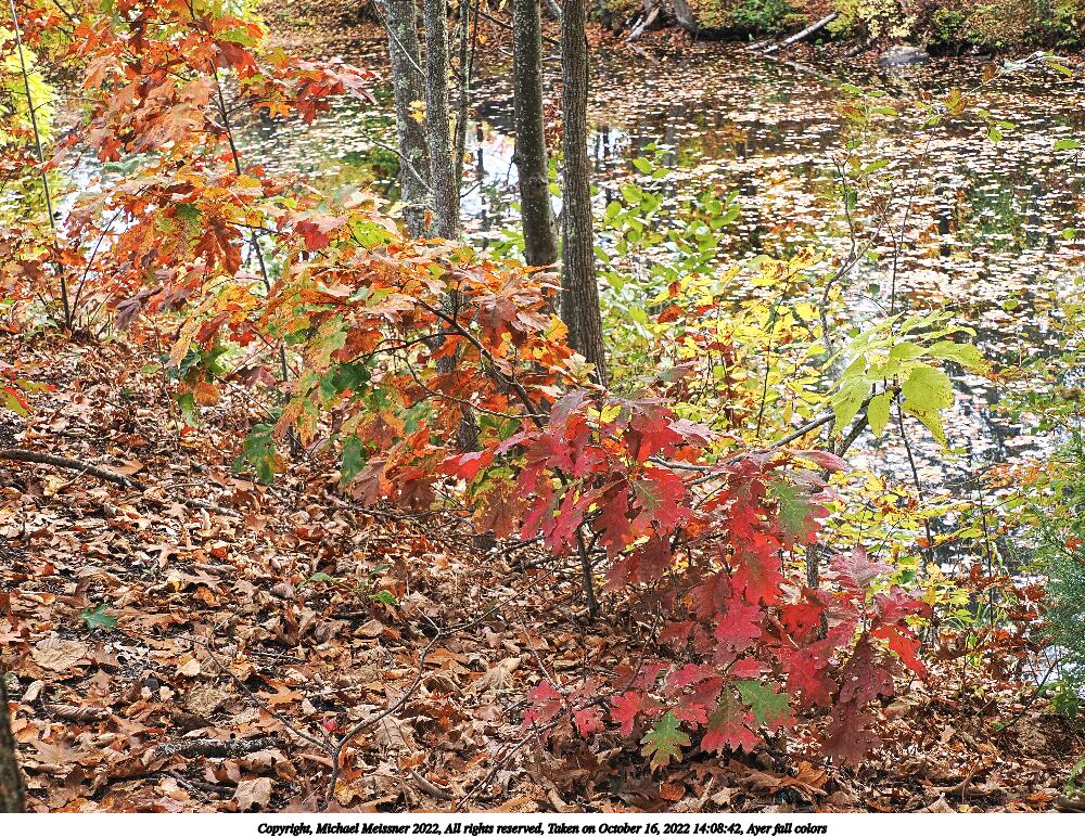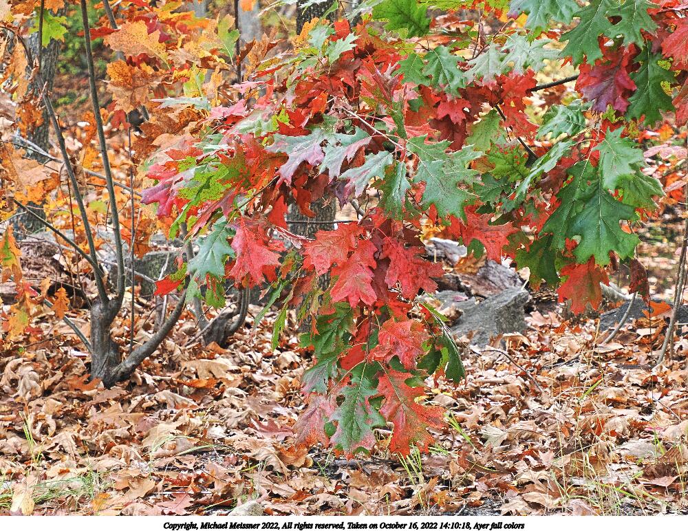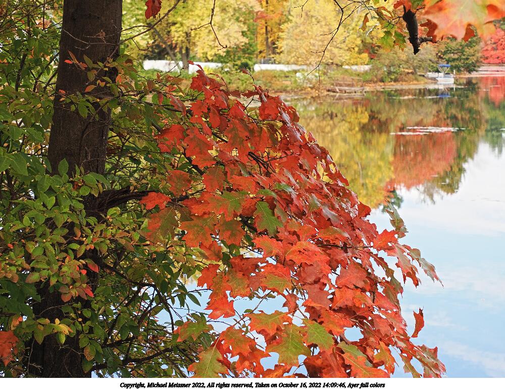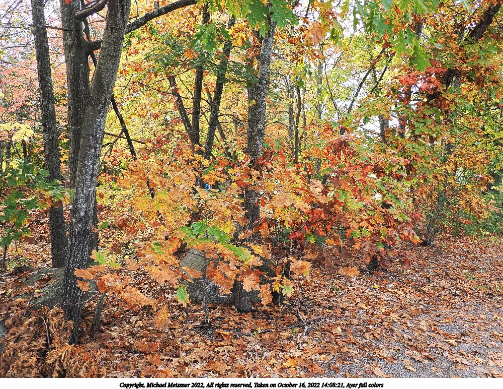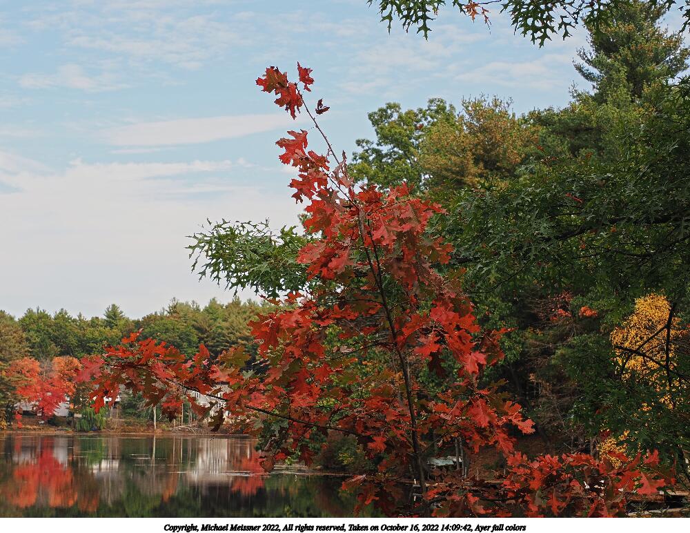 Picture #73: Ayer fall colors #7 1000x772, 213,545 bytes (209K), (html file) Copyright, Michael Meissner 2022, All rights reserved OM OM1 camera with Olympus-m43 12-200mm f/3.5-6.3 lens f/8.0, ISO 200, 1/200 sec, 42.0mm, auto mode, vivid color, matrix metering, IS Auto, anti-shock 35mm equivalent focal length 84.0mm Programs used: crop, raw therapee Taken by Michael Meissner on October 16, 2022 14:09:42 Last modified on November 24, 2022 at 21:32 |