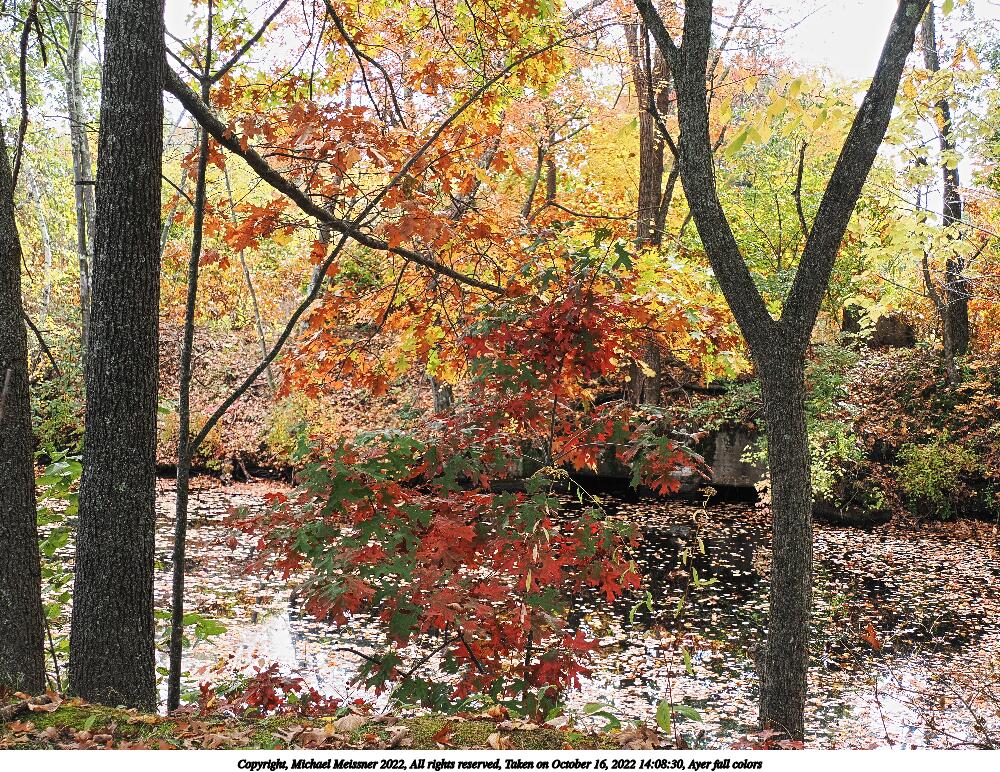 Picture #79: Ayer fall colors 1000x772, 407,975 bytes (399K), (html file) Copyright, Michael Meissner 2022, All rights reserved OM OM1 camera with Olympus-m43 12-200mm f/3.5-6.3 lens f/4.5, ISO 200, 1/100 sec, 14.0mm, auto mode, vivid color, matrix metering, IS Auto, anti-shock 35mm equivalent focal length 28.0mm Programs used: crop, raw therapee Taken by Michael Meissner on October 16, 2022 14:08:21 Last modified on November 24, 2022 at 21:31 |