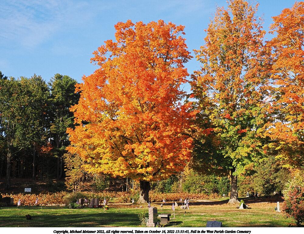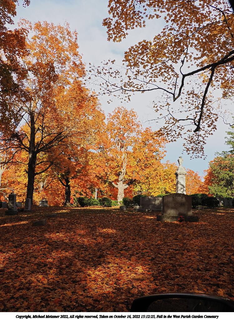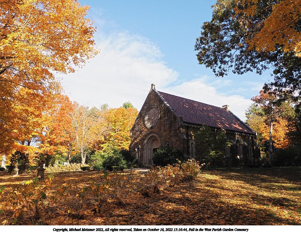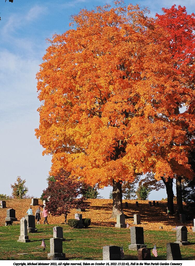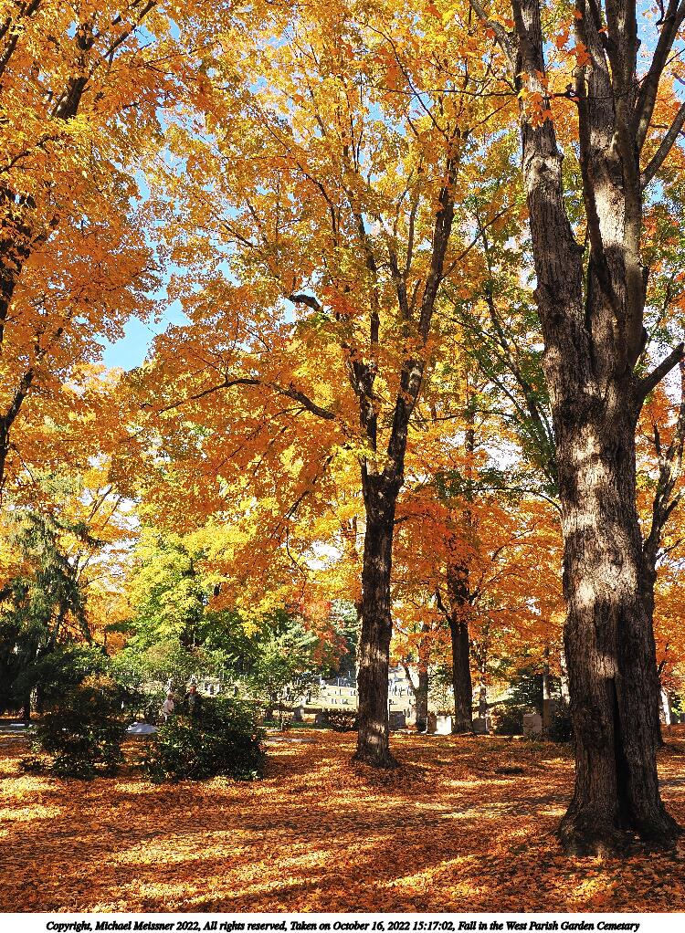 Picture #67: Fall in the West Parish Garden Cemetary #3 1000x772, 260,233 bytes (255K), (html file) Copyright, Michael Meissner 2022, All rights reserved OM OM1 camera with Olympus-m43 12-200mm f/3.5-6.3 lens f/6.3, ISO 200, 1/160 sec, 15.0mm, auto mode, vivid color, matrix metering, IS Auto, anti-shock 35mm equivalent focal length 30.0mm Programs used: crop, raw therapee Taken by Michael Meissner on October 16, 2022 15:13:40 Last modified on November 24, 2022 at 21:37 |