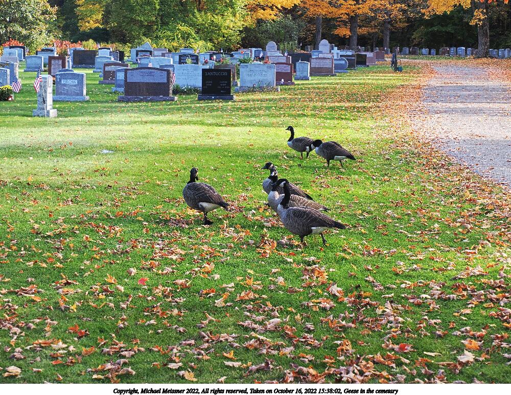 Picture #41: Geese in the cemetary #4 1000x772, 358,093 bytes (350K), (html file) Copyright, Michael Meissner 2022, All rights reserved OM OM1 camera with Olympus-m43 12-200mm f/3.5-6.3 lens f/5.6, ISO 200, 1/100 sec, 42.0mm, auto mode, vivid color, matrix metering, IS Auto, anti-shock 35mm equivalent focal length 84.0mm Programs used: crop, raw therapee Taken by Michael Meissner on October 16, 2022 15:38:02 Last modified on November 24, 2022 at 22:00 |