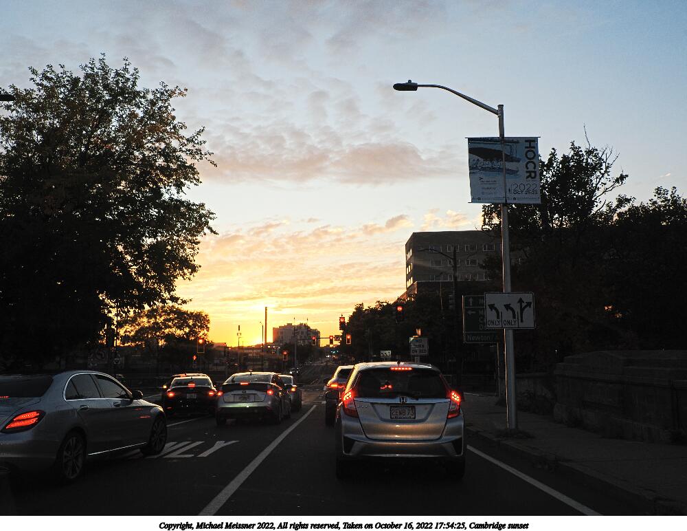 Picture #36: Cambridge sunset 1000x772, 139,132 bytes (136K), (html file) Copyright, Michael Meissner 2022, All rights reserved OM OM1 camera with Olympus-m43 12-200mm f/3.5-6.3 lens f/6.3, ISO 200, 1/160 sec, 15.0mm, auto mode, vivid color, matrix metering, IS Auto, anti-shock 35mm equivalent focal length 30.0mm Taken by Michael Meissner on October 16, 2022 17:54:25 Last modified on November 24, 2022 at 22:03 |