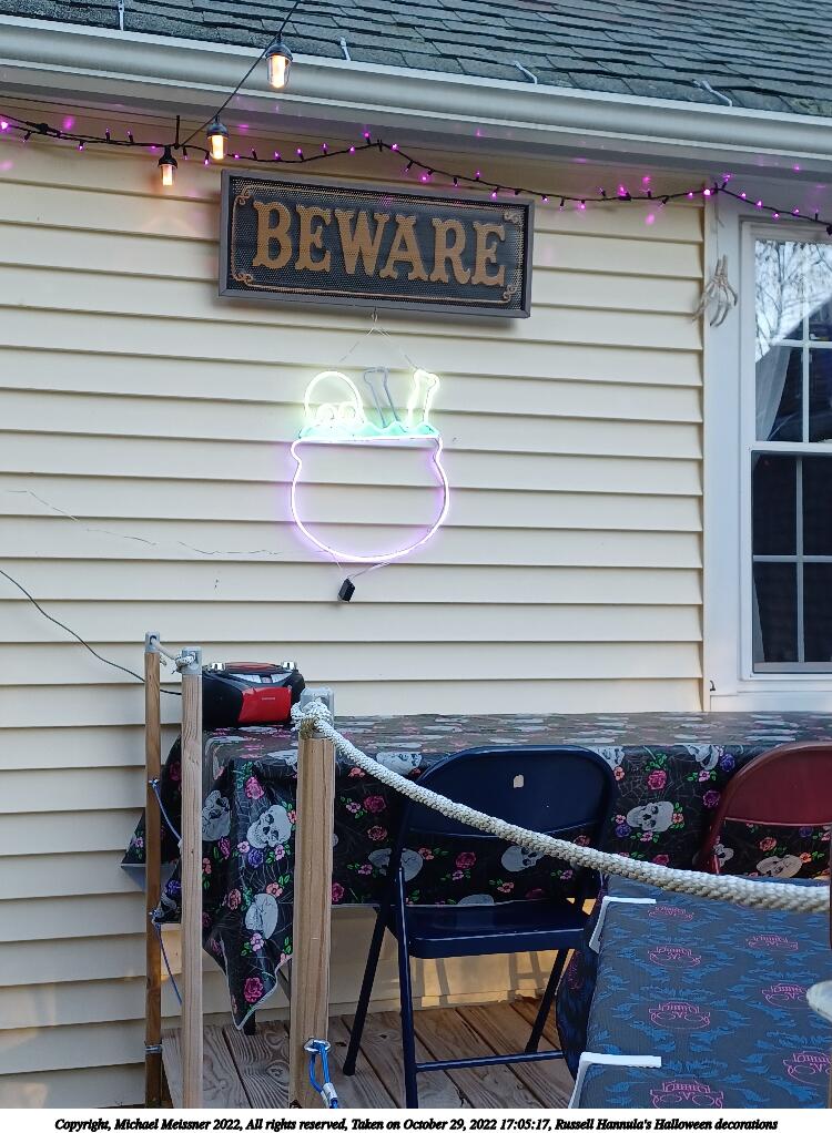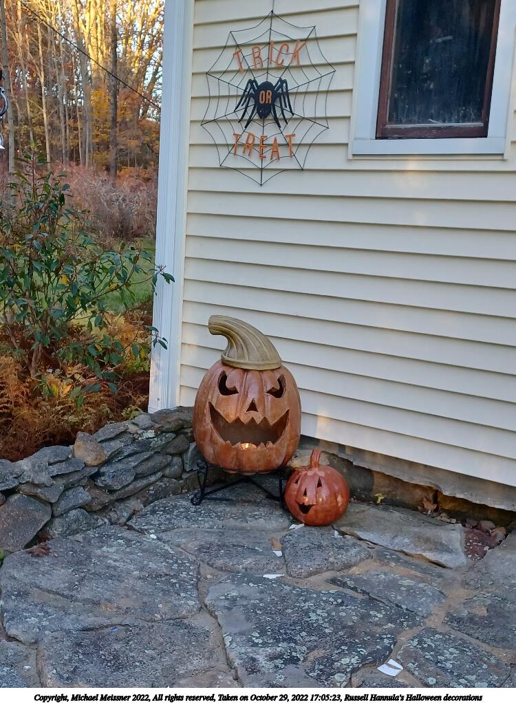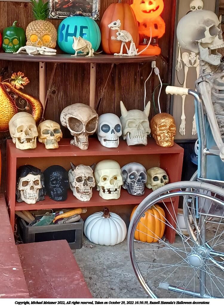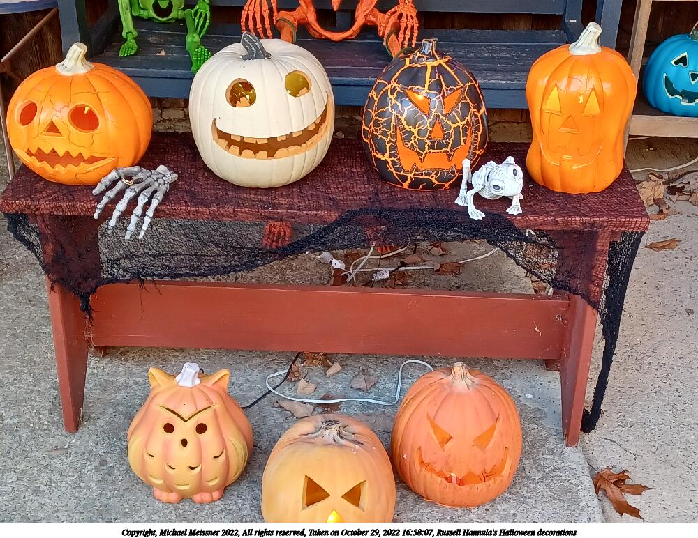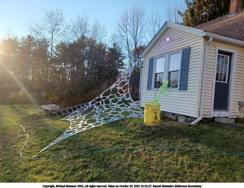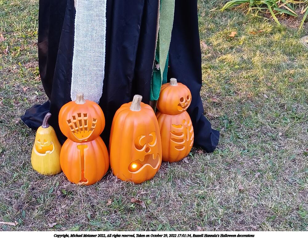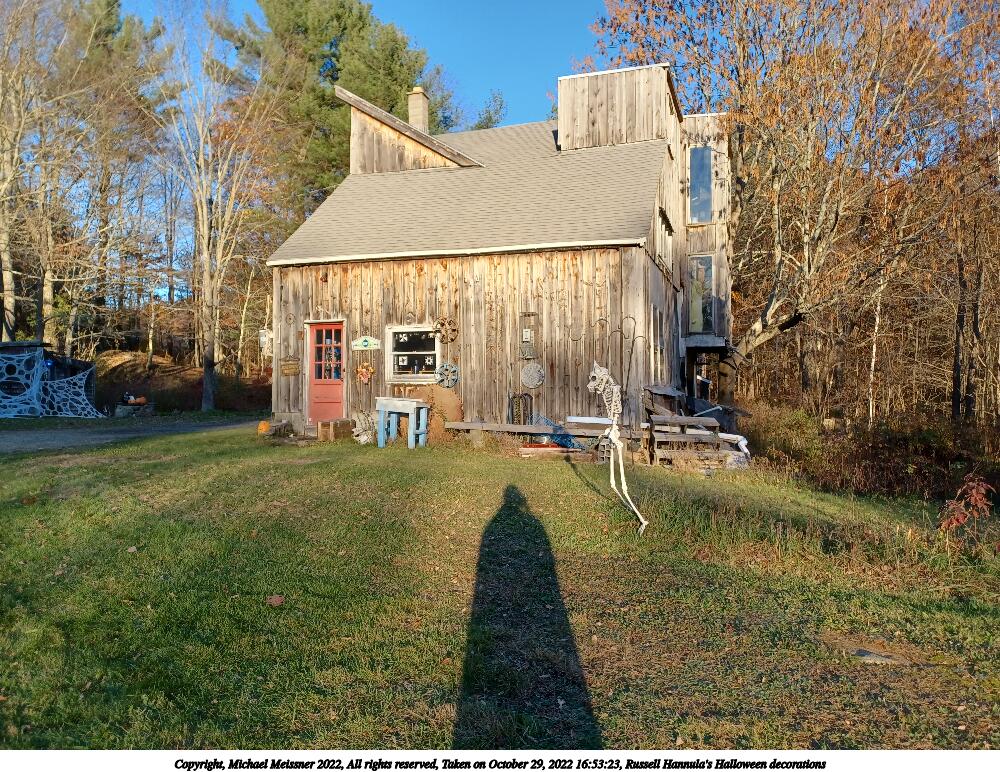 Picture #34: Russell Hannula's Halloween decorations #2 1000x772, 293,323 bytes (287K), (html file) Copyright, Michael Meissner 2022, All rights reserved Samsung A32 5G phone f/1.8, ISO 125, 1/60 sec, 4.6mm, auto mode, spot metering 35mm equivalent focal length 25.0mm Taken by Michael Meissner on October 29, 2022 16:50:15 Last modified on November 25, 2022 at 12:20 |