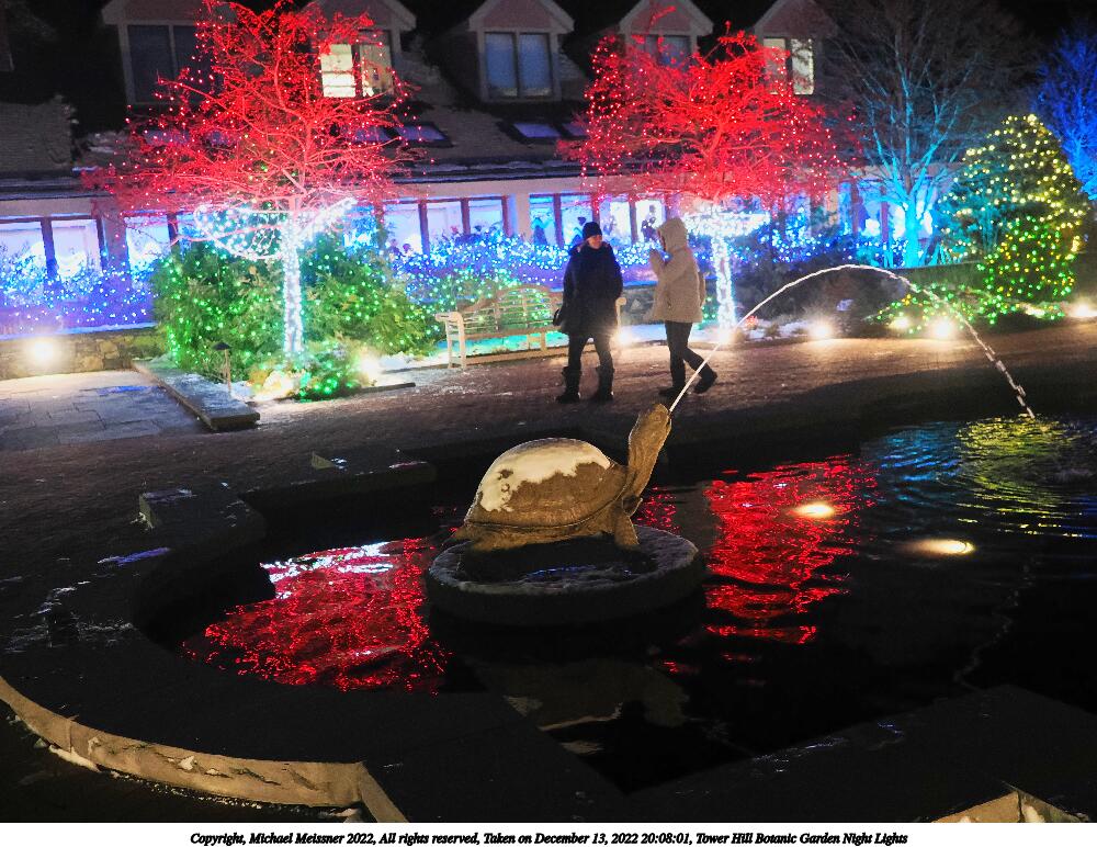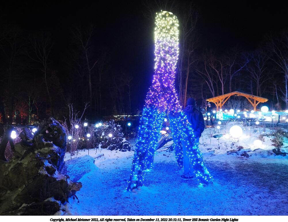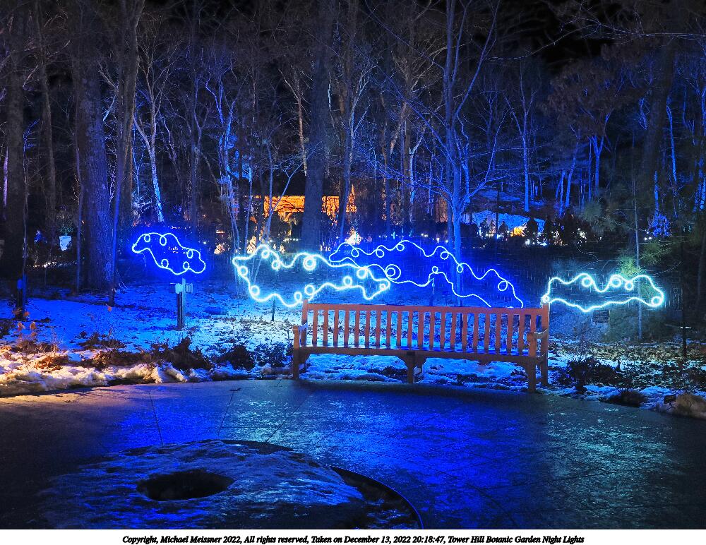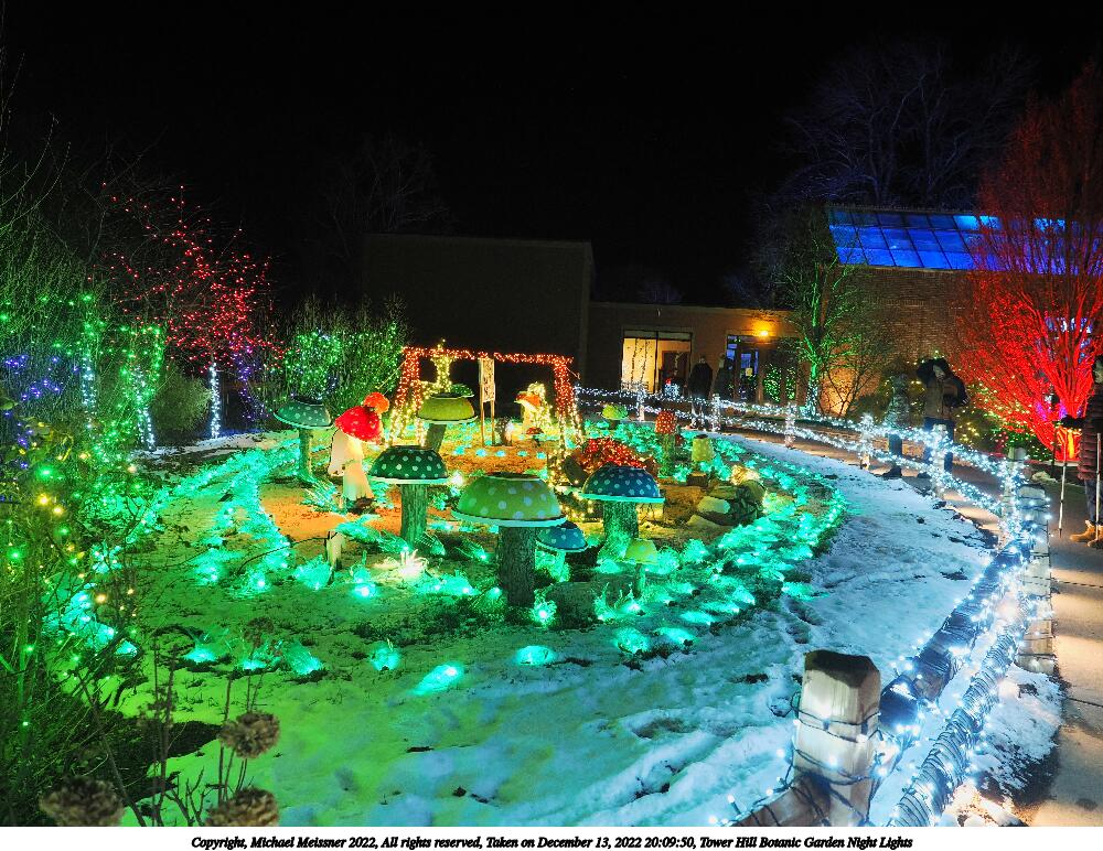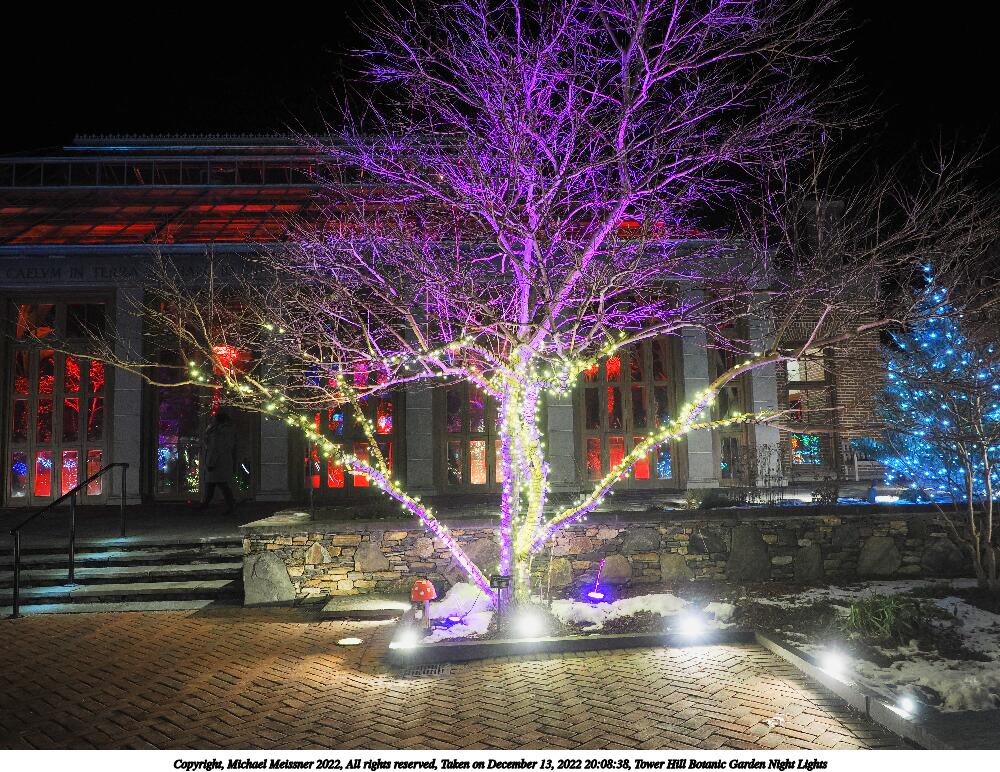 Picture #4: Tower Hill Botanic Garden Night Lights 1000x772, 185,846 bytes (182K), (html file) Copyright, Michael Meissner 2022, All rights reserved OM OM1 camera with Olympus-m43 12-40mm f/2.8 lens f/2.8, ISO 6400, 1/60 sec, 18.0mm, auto mode, vivid color, matrix metering, IS Auto, anti-shock 35mm equivalent focal length 36.0mm Programs used: crop, raw therapee Taken by Michael Meissner on December 13, 2022 20:08:01 Last modified on December 21, 2022 at 22:14 |