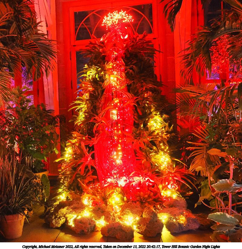 Picture #12: Tower Hill Botanic Garden Night Lights #9 800x822, 263,230 bytes (258K), (html file) Copyright, Michael Meissner 2022, All rights reserved OM OM1 camera with Olympus-m43 12-40mm f/2.8 lens f/2.8, ISO 6400, 1/60 sec, 12.0mm, auto mode, vivid color, matrix metering, IS Auto, anti-shock 35mm equivalent focal length 24.0mm Programs used: crop, gimp, raw therapee Taken by Michael Meissner on December 13, 2022 20:15:55 Last modified on December 21, 2022 at 22:21 |