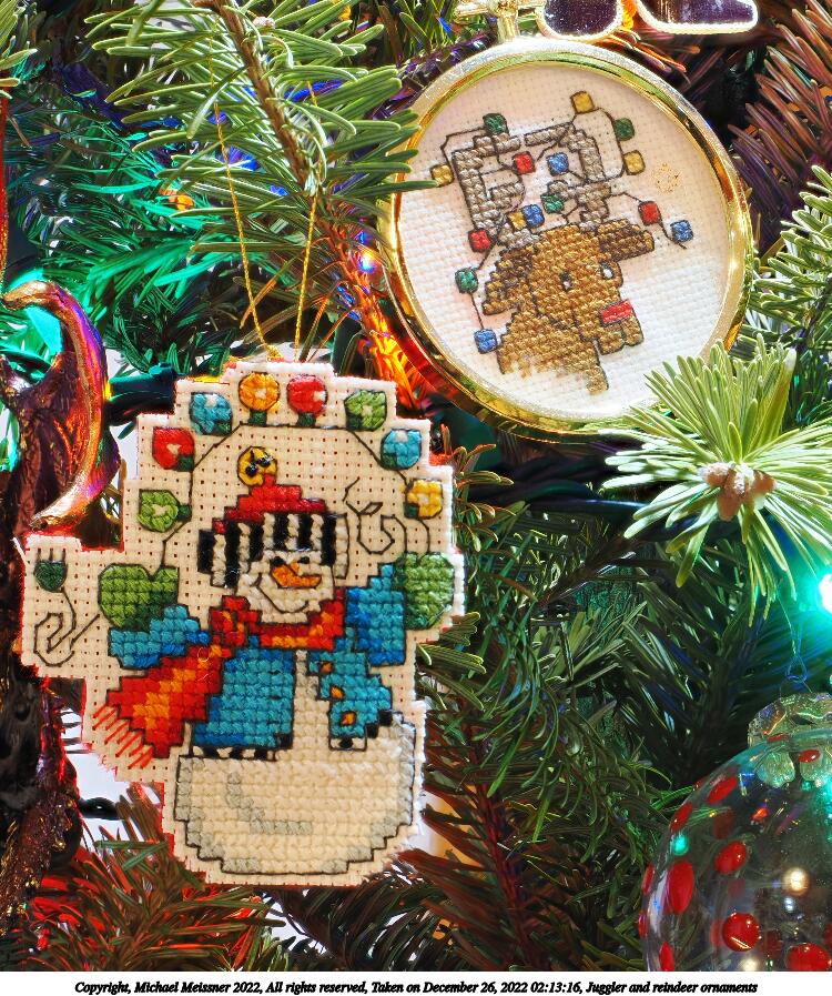 Picture #32: Juggler and reindeer ornaments 750x897, 235,977 bytes (231K), (html file) Copyright, Michael Meissner 2022, All rights reserved OM OM1 camera with Olympus-m43 12-40mm f/2.8 lens f/5.6, ISO 200, 1 sec, 40.0mm, aperture priority, vivid color, matrix metering, IS Auto, focus stacked 35mm equivalent focal length 80.0mm Programs used: crop, gimp, raw therapee Taken by Michael Meissner on December 26, 2022 02:13:16 Last modified on December 28, 2022 at 01:30 |