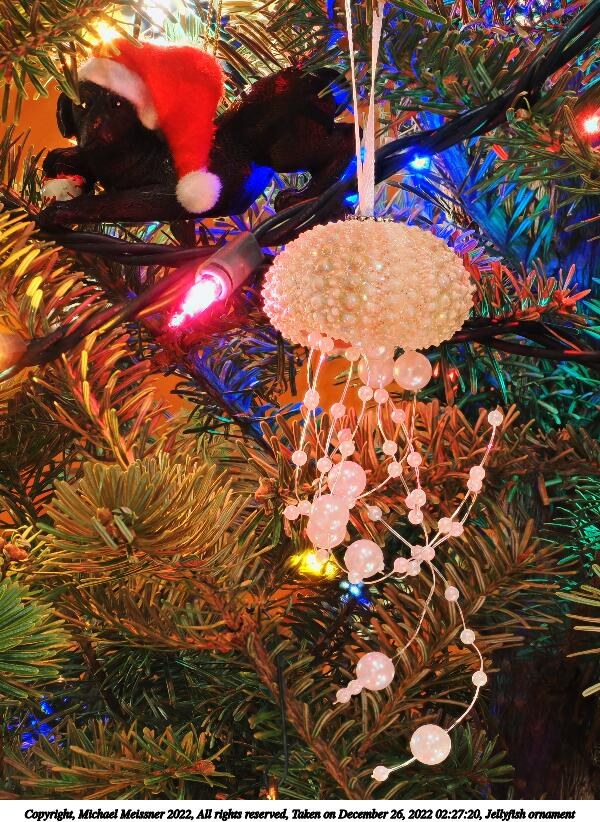Picture #38: Jellyfish ornament 600x822, 172,623 bytes (169K), (html file) Copyright, Michael Meissner 2022, All rights reserved OM OM1 camera with Olympus-m43 12-40mm f/2.8 lens f/5.6, ISO 200, 1.3 sec, 40.0mm, aperture priority, vivid color, matrix metering, IS Auto, focus stacked 35mm equivalent focal length 80.0mm Programs used: crop, gimp, raw therapee Taken by Michael Meissner on December 26, 2022 02:27:20 Last modified on December 28, 2022 at 01:42 |