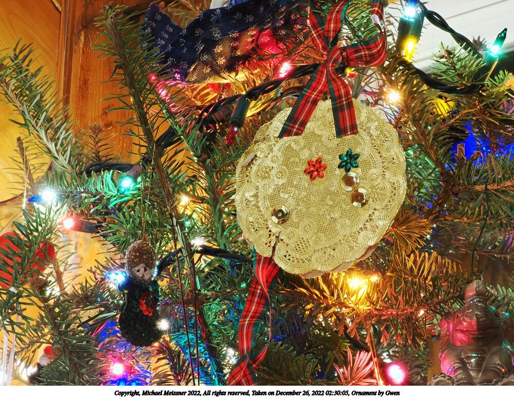Picture #41: Ornament by Gwen #2 1000x772, 224,556 bytes (220K), (html file) Copyright, Michael Meissner 2022, All rights reserved OM OM1 camera with Olympus-m43 12-40mm f/2.8 lens f/5.6, ISO 200, 1 sec, 22.0mm, aperture priority, vivid color, matrix metering, digital zoom x2, IS Auto, focus stacked 35mm equivalent focal length 88.0mm, digital zoom x2 Programs used: crop, gimp, raw therapee Taken by Michael Meissner on December 26, 2022 02:35:00 Last modified on December 28, 2022 at 01:45 |
