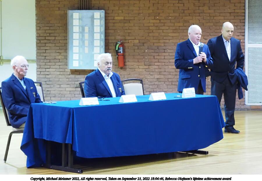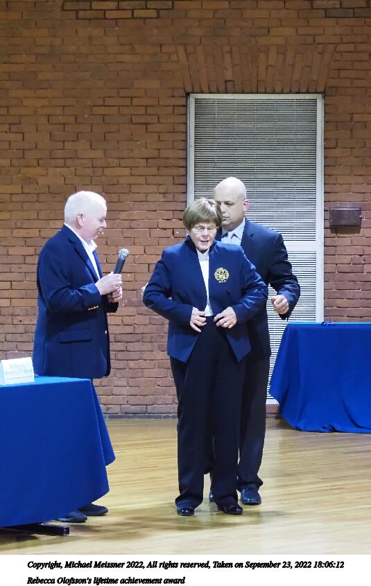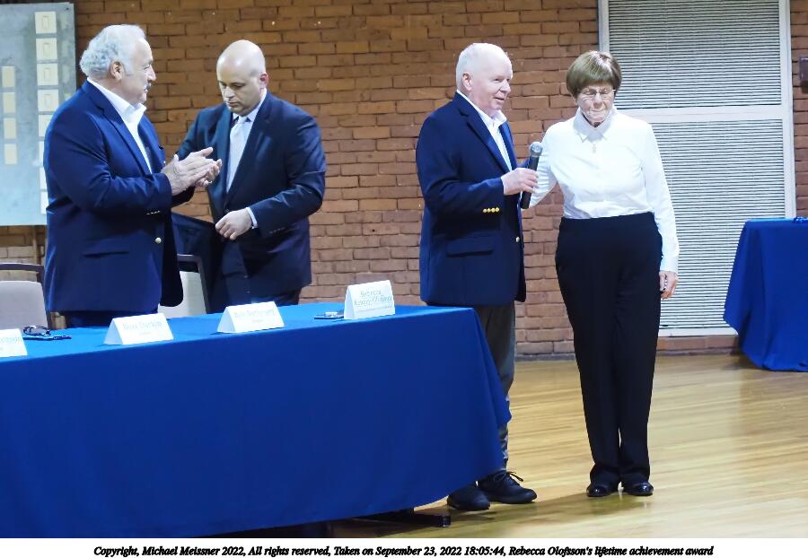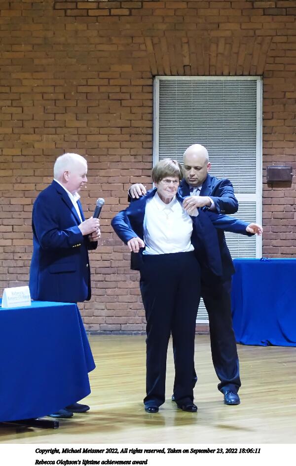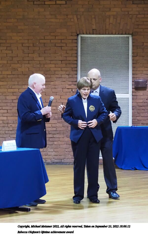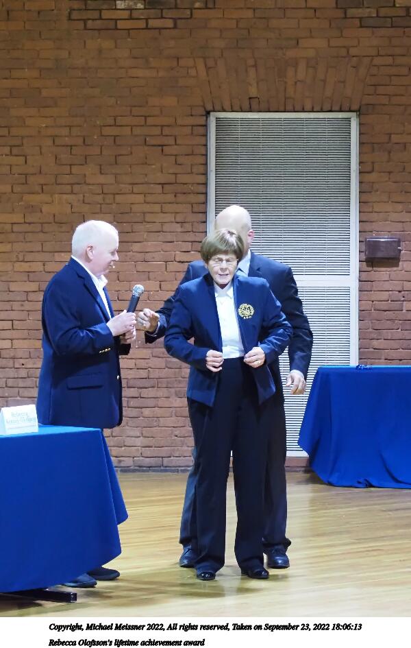 Picture #56: Rebecca Olofsson's lifetime achievement award #8 1000x772, 114,788 bytes (113K), (html file) Copyright, Michael Meissner 2022, All rights reserved Olympus E-M5-III camera with Olympus 14-54mm-II f/2.8-3.5 lens f/3.5, ISO 5000, 1/100 sec, 52.0mm, auto mode, vivid color, matrix metering, IS Auto, face detection 35mm equivalent focal length 104.0mm Programs used: crop, gimp, raw therapee Taken by Michael Meissner on September 23, 2022 18:07:05 Last modified on November 06, 2022 at 12:40 |