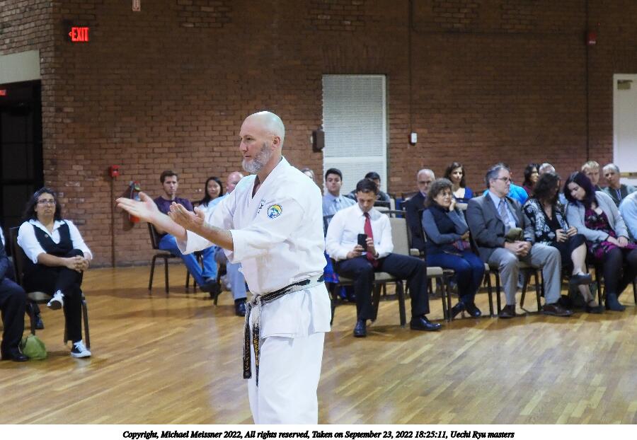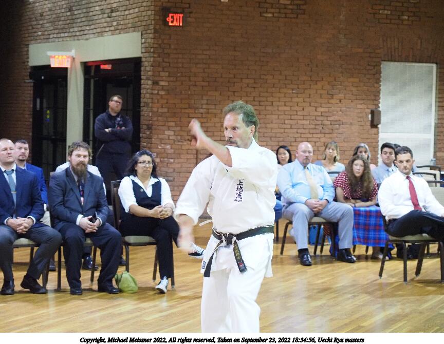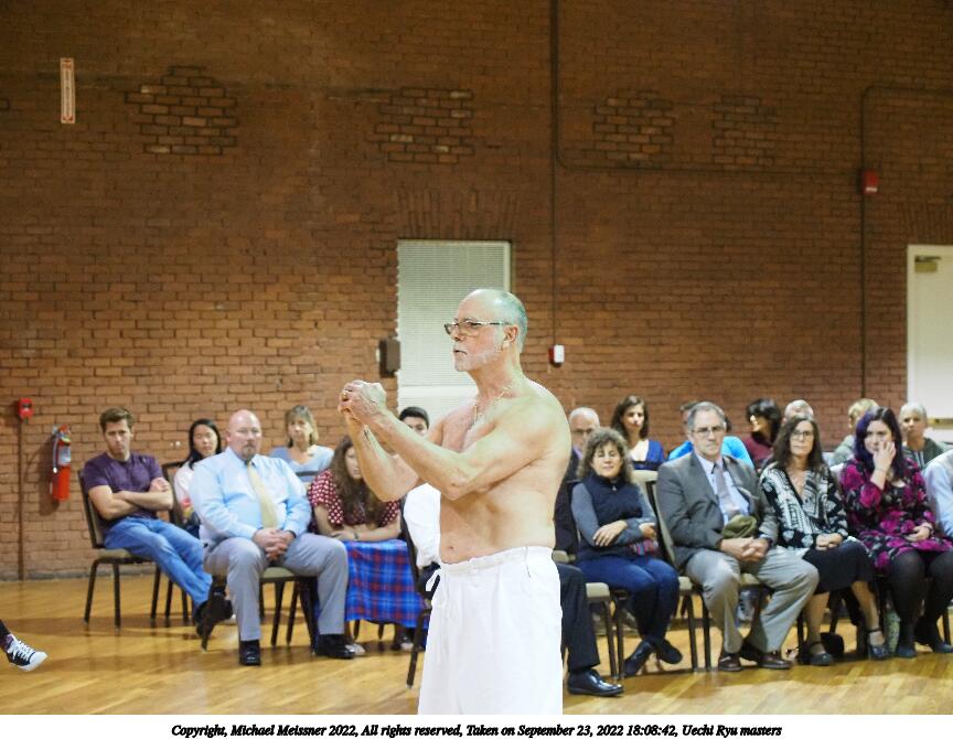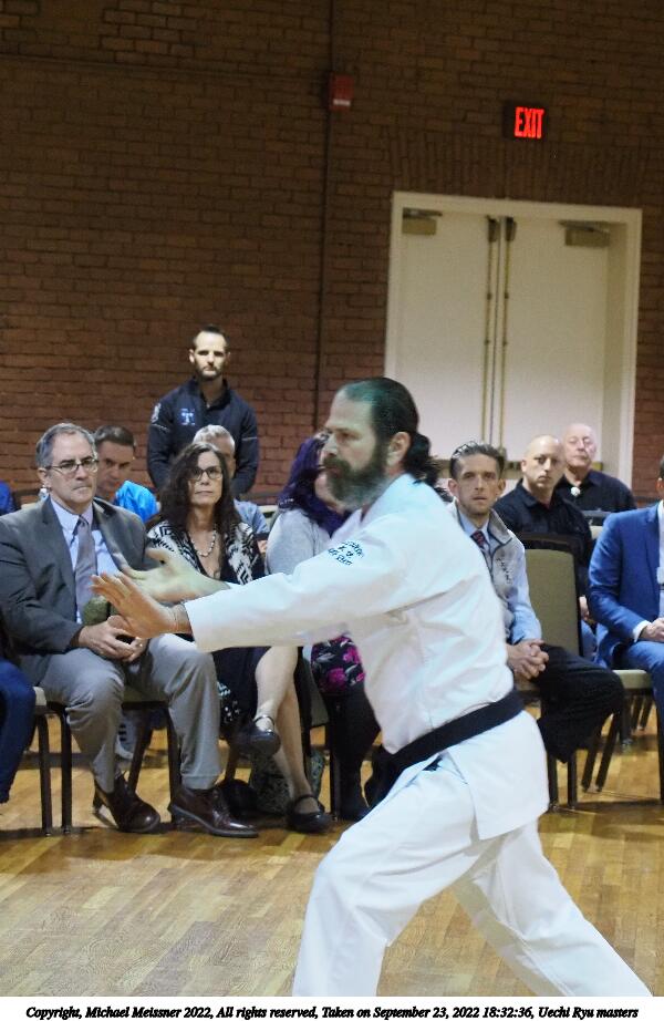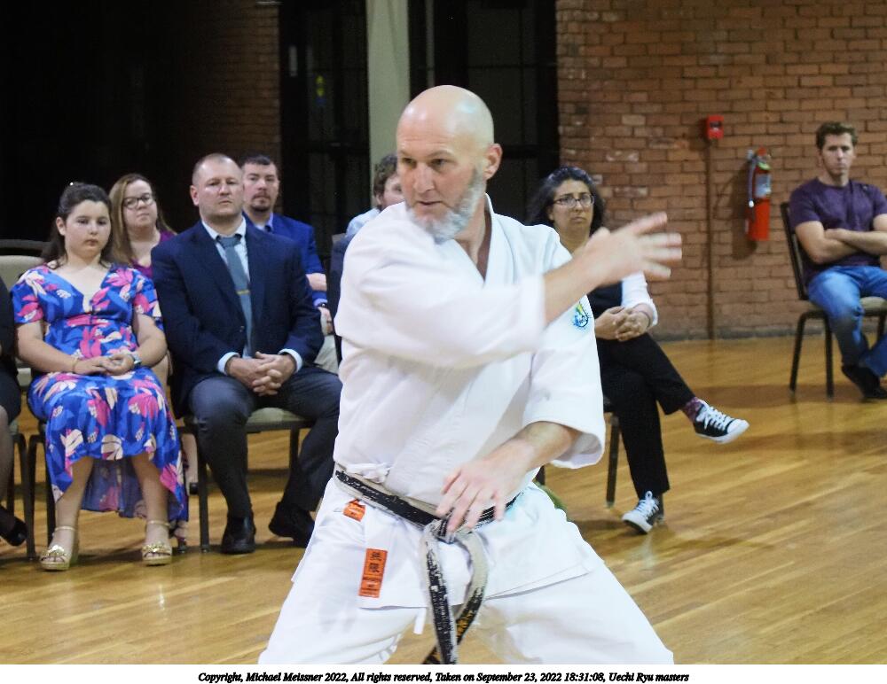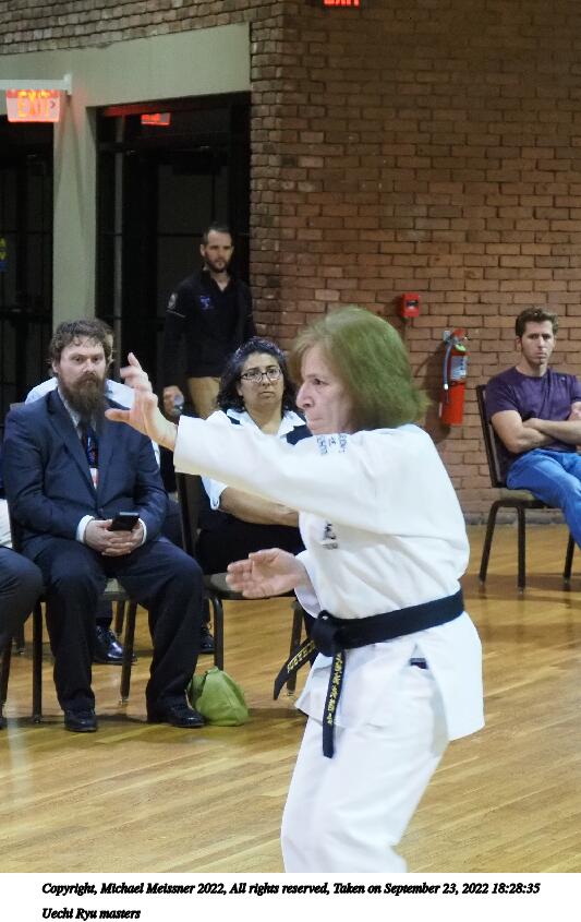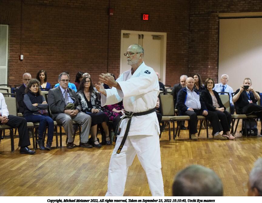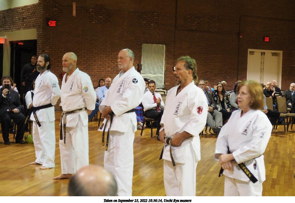 Picture #51: Uechi Ryu masters #4 864x670, 107,167 bytes (105K), (html file) Copyright, Michael Meissner 2022, All rights reserved Olympus E-M5-III camera with Olympus 14-54mm-II f/2.8-3.5 lens f/3.5, ISO 2500, 1/125 sec, 54.0mm, auto mode, vivid color, matrix metering, IS Auto, face detection 35mm equivalent focal length 108.0mm Taken by Michael Meissner on September 23, 2022 18:10:41 Last modified on November 06, 2022 at 14:56 |