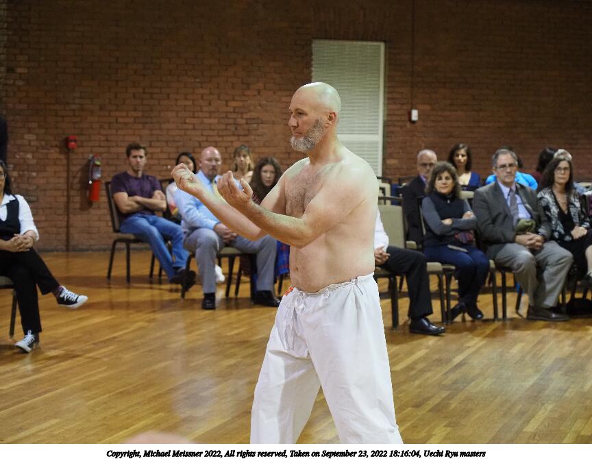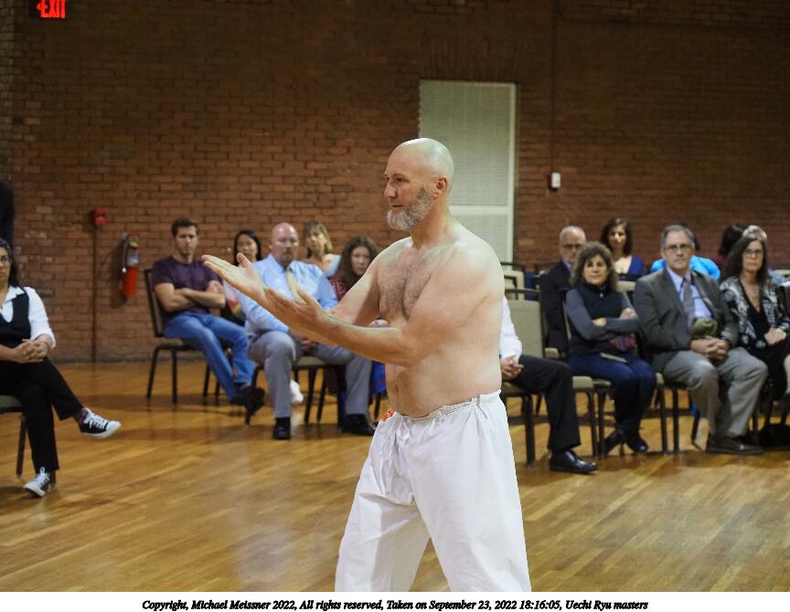 Picture #48: Uechi Ryu masters #6 864x670, 98,389 bytes (97K), (html file) Copyright, Michael Meissner 2022, All rights reserved Olympus E-M5-III camera with Olympus 14-54mm-II f/2.8-3.5 lens f/3.5, ISO 2500, 1/125 sec, 54.0mm, auto mode, vivid color, matrix metering, IS Auto, face detection 35mm equivalent focal length 108.0mm Taken by Michael Meissner on September 23, 2022 18:16:04 Last modified on November 06, 2022 at 15:02 |
