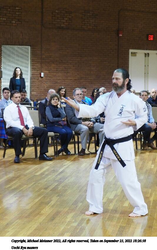 Picture #54: Uechi Ryu masters 864x670, 109,192 bytes (107K), (html file) Copyright, Michael Meissner 2022, All rights reserved Olympus E-M5-III camera with Olympus 14-54mm-II f/2.8-3.5 lens f/3.5, ISO 4000, 1/100 sec, 52.0mm, auto mode, vivid color, matrix metering, IS Auto, face detection 35mm equivalent focal length 104.0mm Taken by Michael Meissner on September 23, 2022 18:08:42 Last modified on November 06, 2022 at 14:55 |
