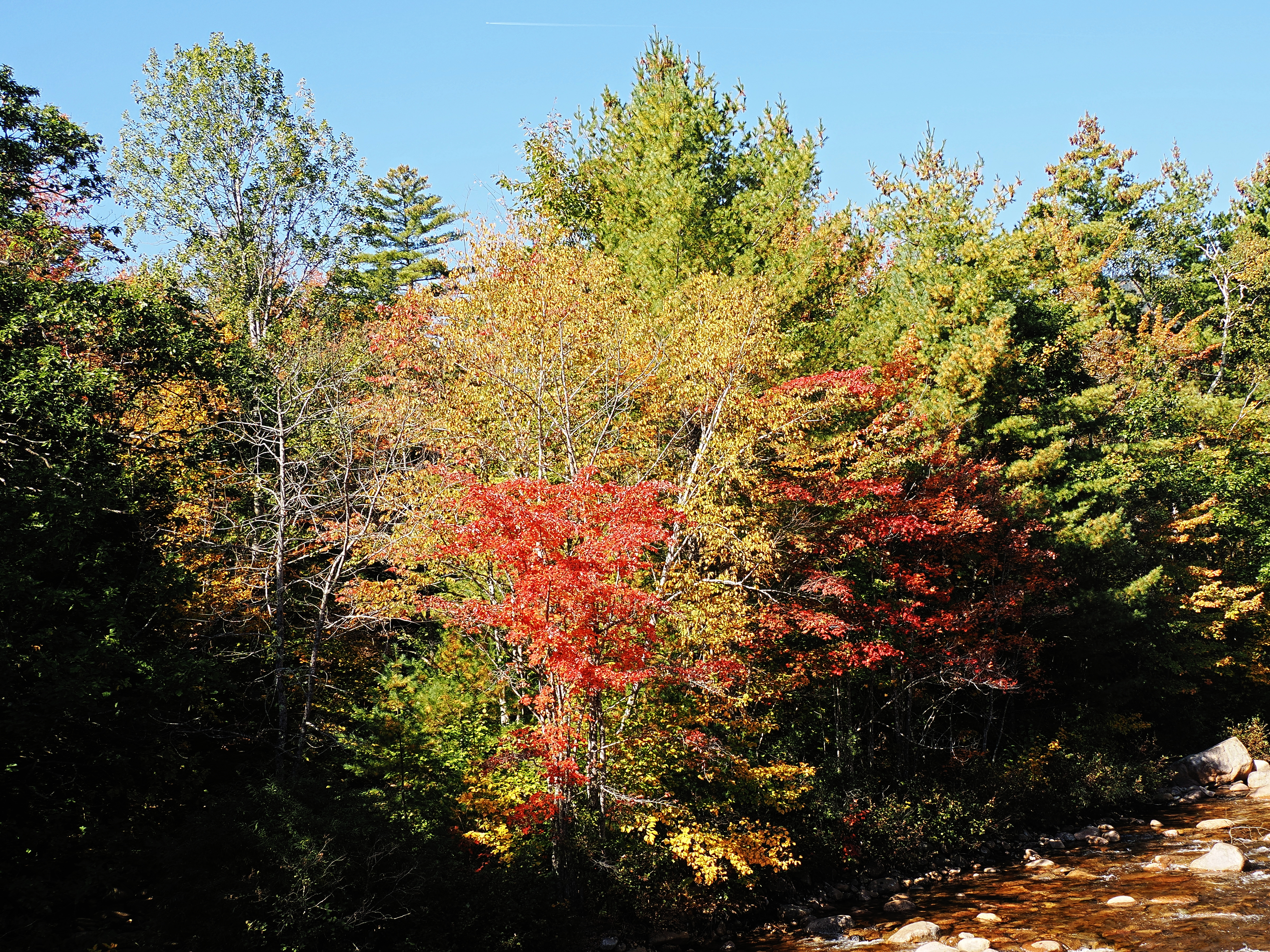 Picture #15: Fall on the Swift river #2 Thumb: 480x360, 72,889 bytes (72K) Small: 960x743, 283,394 bytes (277K), (html file) Large: 4800x3600, 7,567,568 bytes (7.2M), (html file) Copyright, Michael Meissner 2023, All rights reserved OM OM1 camera with Olympus-m43 12-200mm f/3.5-6.3 lens f/7.1, ISO 200, 1/500 sec, 12.0mm, auto mode, vivid color, matrix metering, continous focus, IS Auto 35mm equivalent focal length 24.0mm Programs used: crop, raw therapee Taken by Michael Meissner on October 04, 2023 12:31:33 Last modified on October 07, 2023 at 18:55 |